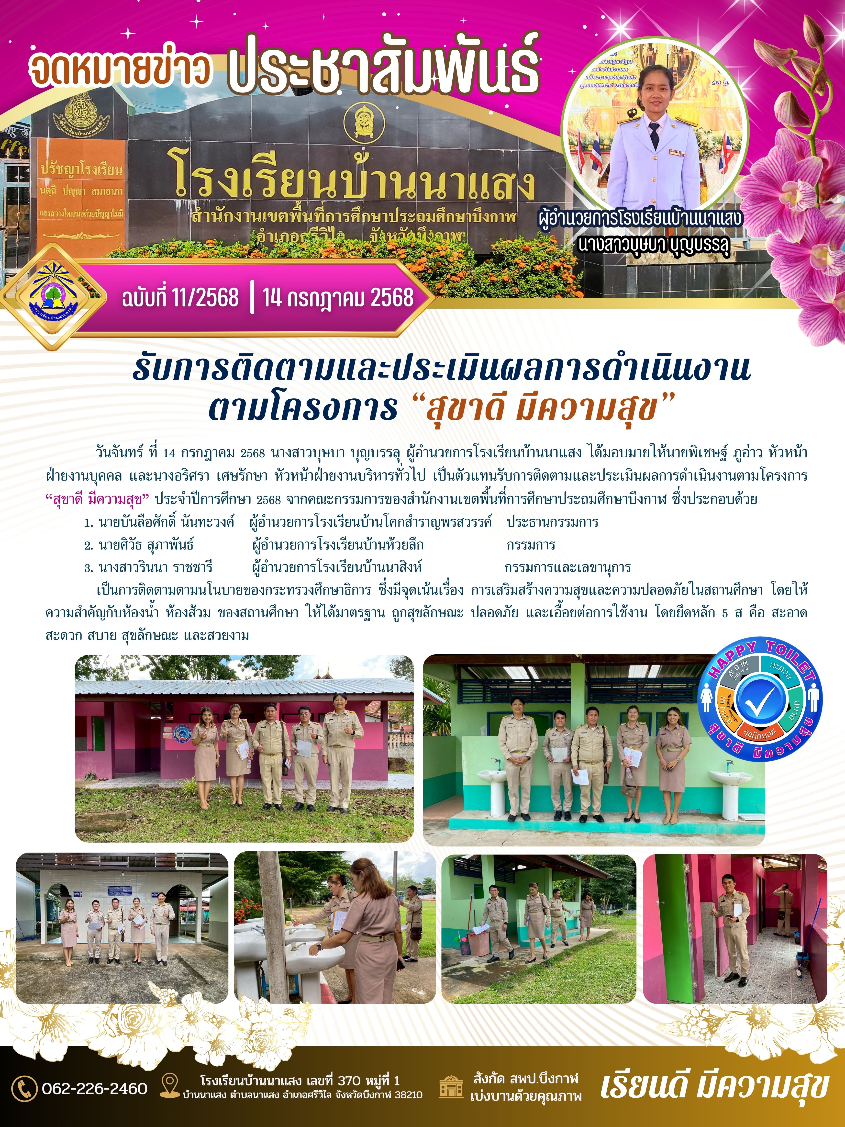 โรงเรียนบ้านนาแสง กลุ่มโรงเรียนนาสะแบง นาแสง รับการประเมิน "โครงการสุขาดี มีความสุข