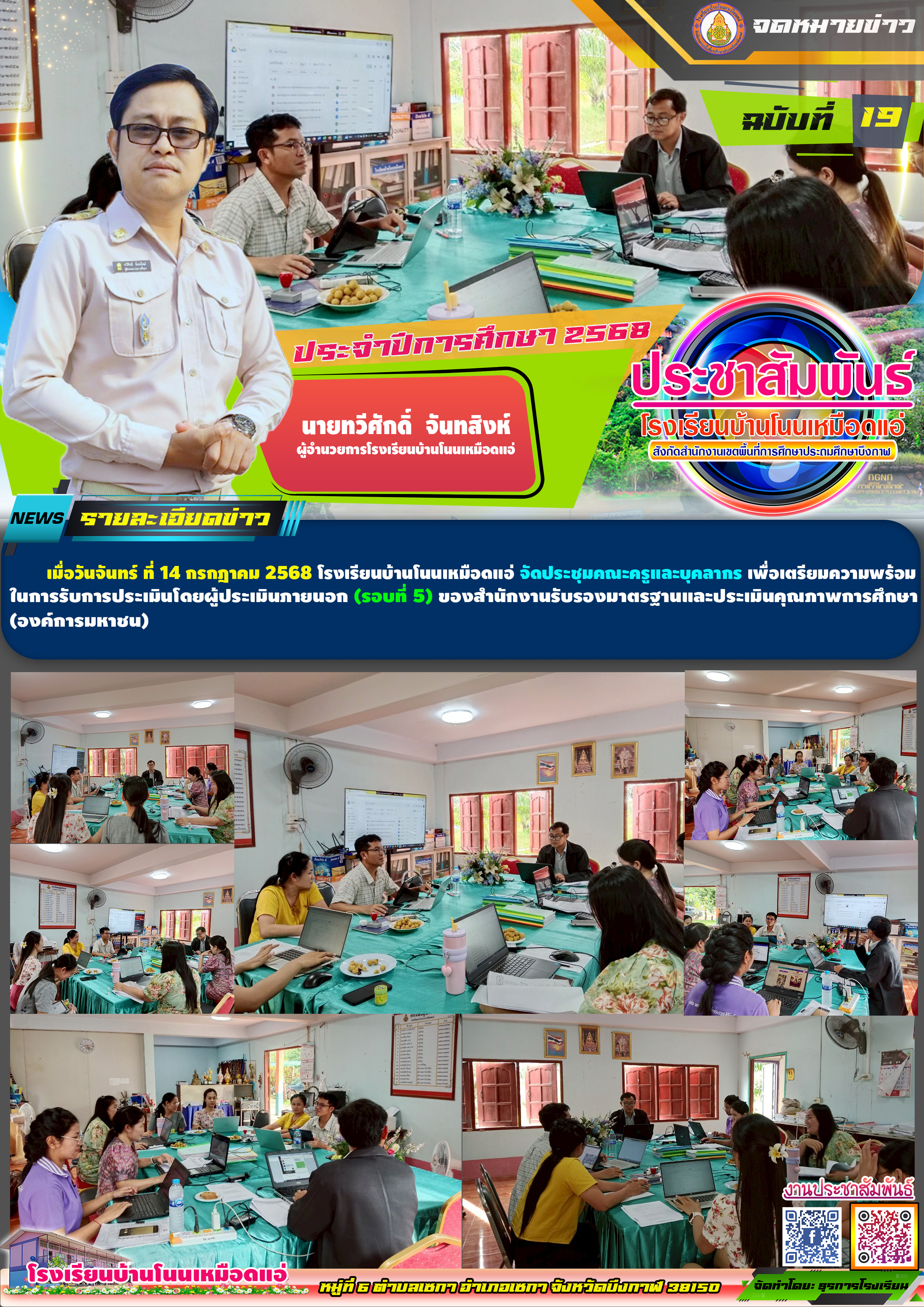 โรงเรียนบ้านโนนเหมือดแอ่ ขอประชาสัมพันธ์จดหมายข่าว ฉบับที่ 19 ปีการศึกษา 2568 การประชุมเตรียมความพร้อมในการรับการประเมินโดยผู้ประเมินภายนอก (รอบที่ 5) ของสำนักงานรับรองมาตรฐานและประเมินคุณภาพการศึกษา (องค์การมหาชน)