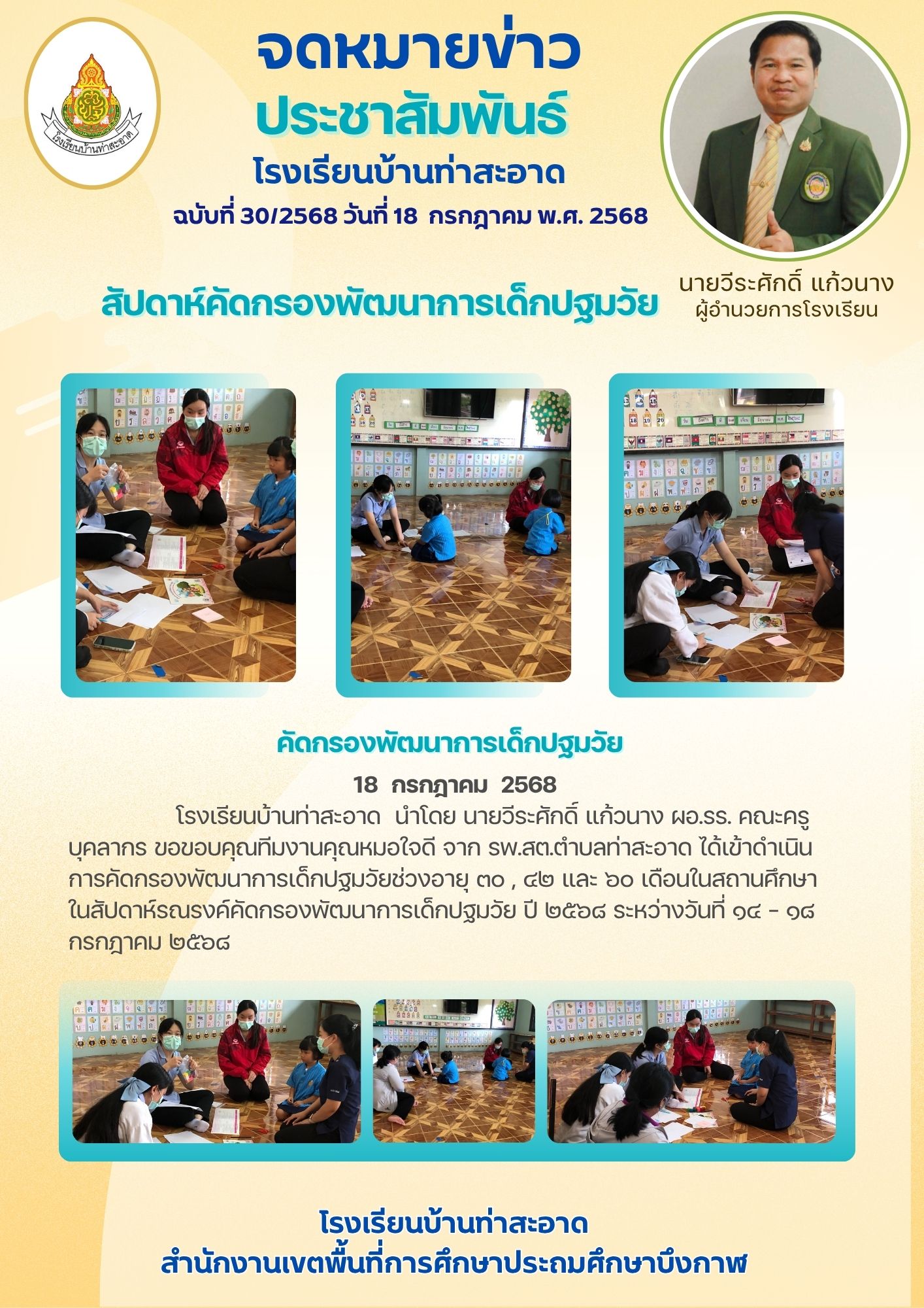 ขอขอบคุณทีมงานคุณหมอใจดี จาก รพ.สต.ตำบลท่าสะอาด ได้เข้าดำเนิน การคัดกรองพัฒนาการเด็กปฐม สัปดาห์รณรงค์คัดกรองพัฒนาการเด็กปฐมวัย ปี ๒๕๖๘