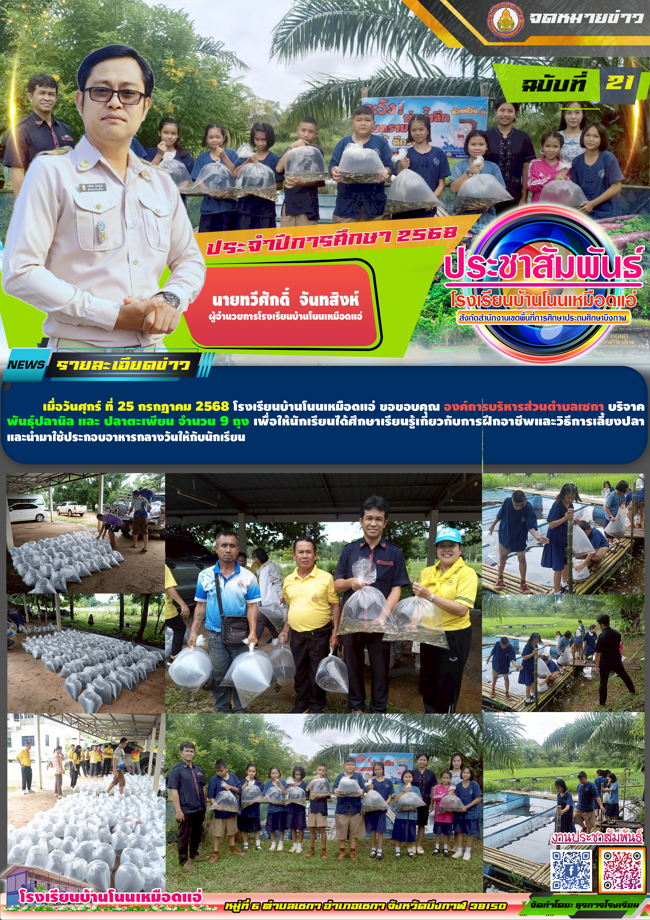 โรงเรียนบ้านโนนเหมือดแอ่ ขอประชาสัมพันธ์จดหมายข่าว ฉบับที่ 21 ปีการศึกษา 2568 องค์การบริหารส่วนตำบลเซกา บริจาคพันธุ์ปลา