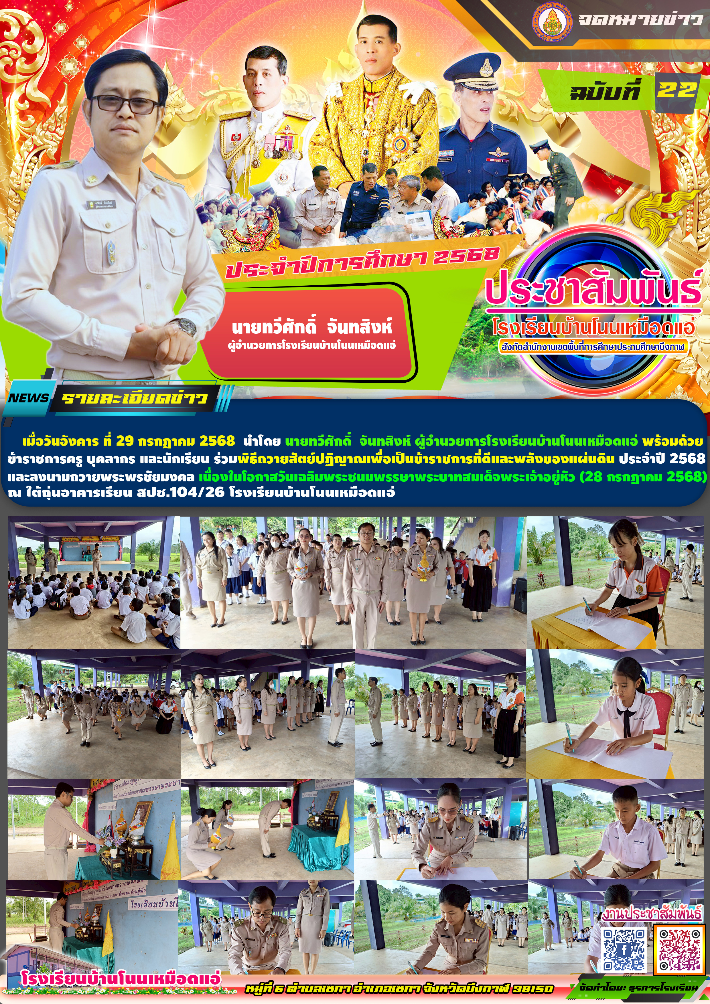 โรงเรียนบ้านโนนเหมือดแอ่ ขอประชาสัมพันธ์จดหมายข่าว ฉบับที่ 22 ปีการศึกษา 2568 พิธีลงนามถวายพระพรชัยมงคลพระบาทสมเด็จพระเจ้าอยู่หัว เนื่องในโอกาสพระราชพิธีมหามงคลเฉลิมพระชนมพรรษา 28 กรกฎาคม 2568