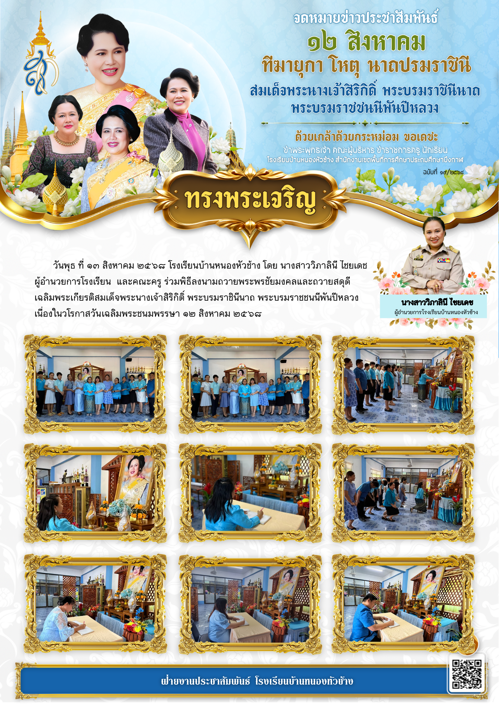 | โรงเรียนบ้านหนองหัวช้าง ขอประชาสัมพันธ์จดหมายข่าว กิจกรรมวันแม่แห่งชาติ ประจำปี 2568(เผยแพร่เมื่อวันที่ 14 สค 2568 18:02:42 น.) ผู้รายงาน : ธุรการโรงเรียน บ้านหนองหัวช้าง |