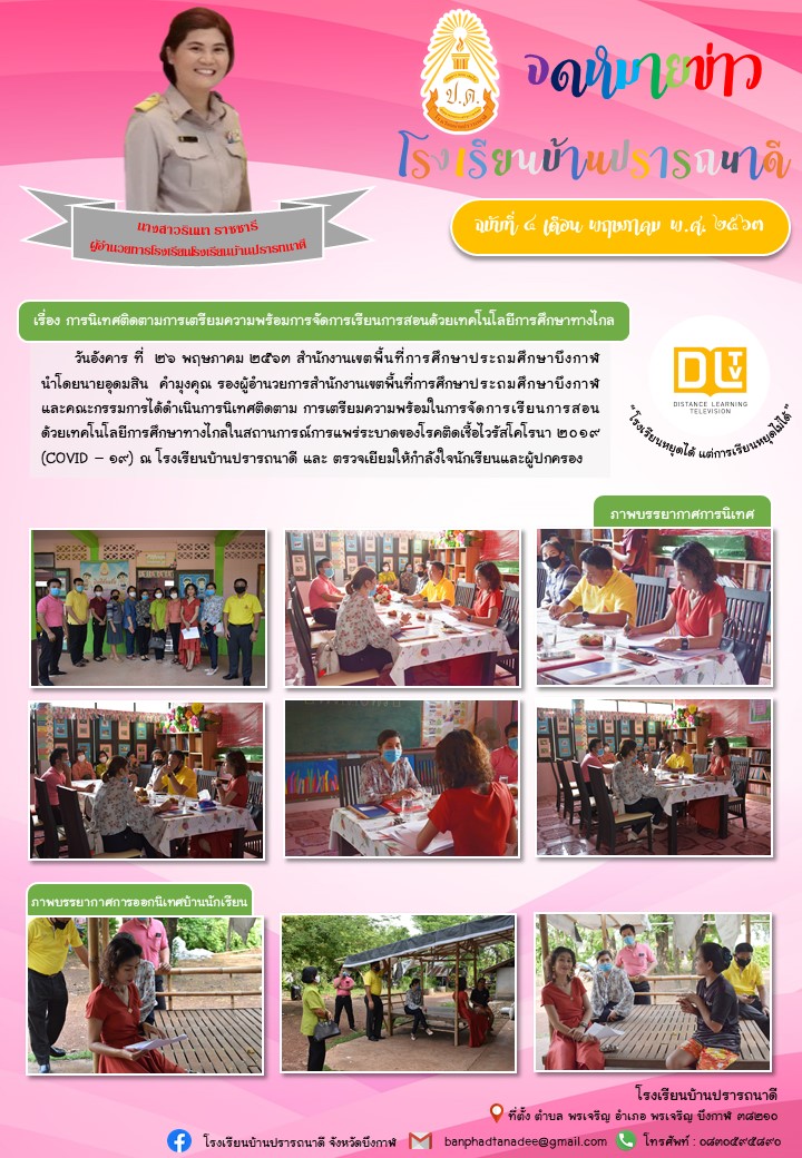 การนิเทศติดตามการเตรียมความพร้อมการจัดการเรียนการสอนด้วบเทคโนโลยีทางไกลโรงเรียนบ้านปรารถนาดี