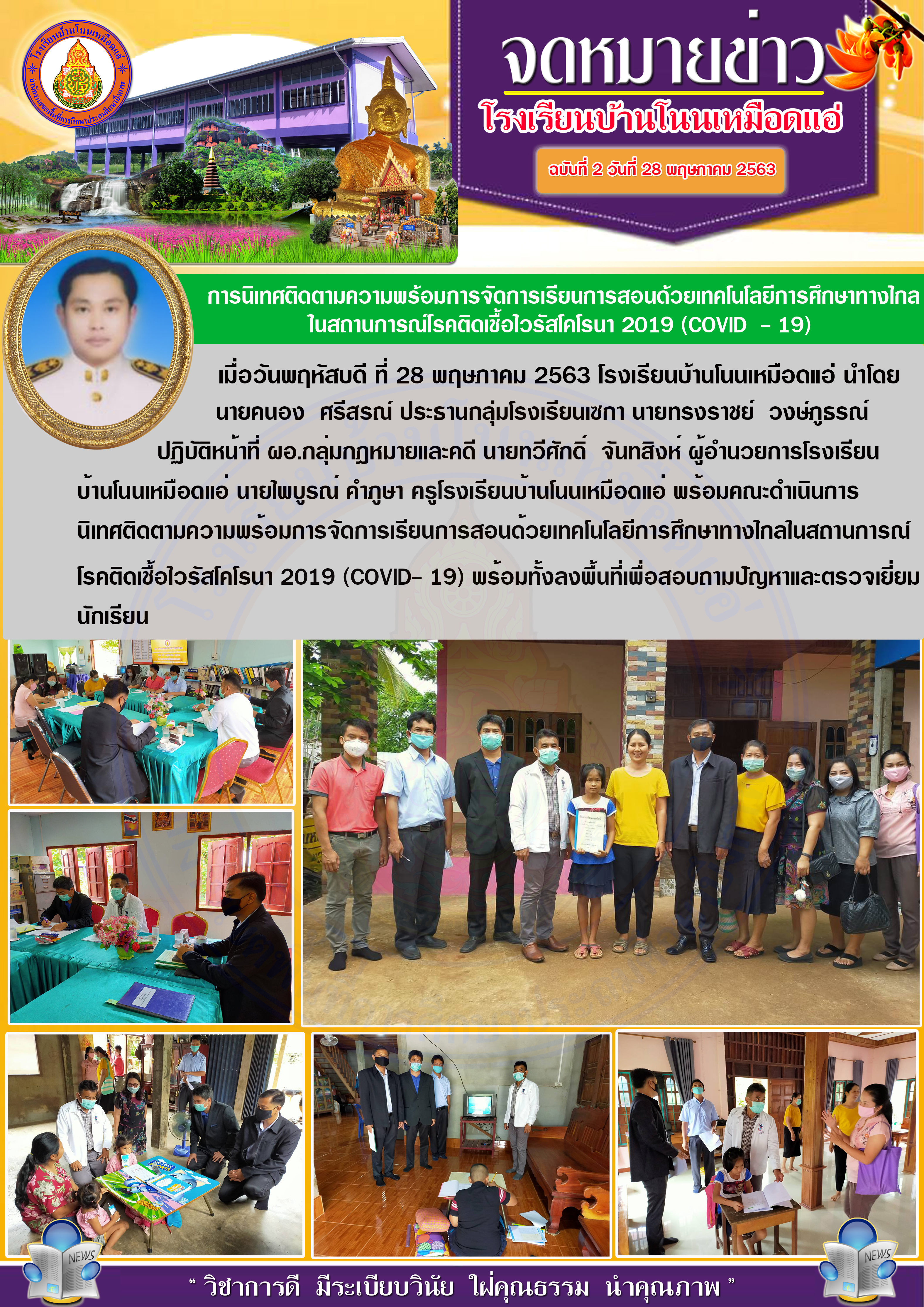 รายงานการนิเทศติดตามความพร้อมการจัดการเรียนการสอนด้วยเทคโนโลยีการศึกษาทางไกล ในสถานการณ์การแพร่ระบาดโรคติดต่อเชื้อไวรัสโคโรน่า 2019 (COVID-19 ) โรงเรียนบ้านโนนเหมือดแอ่