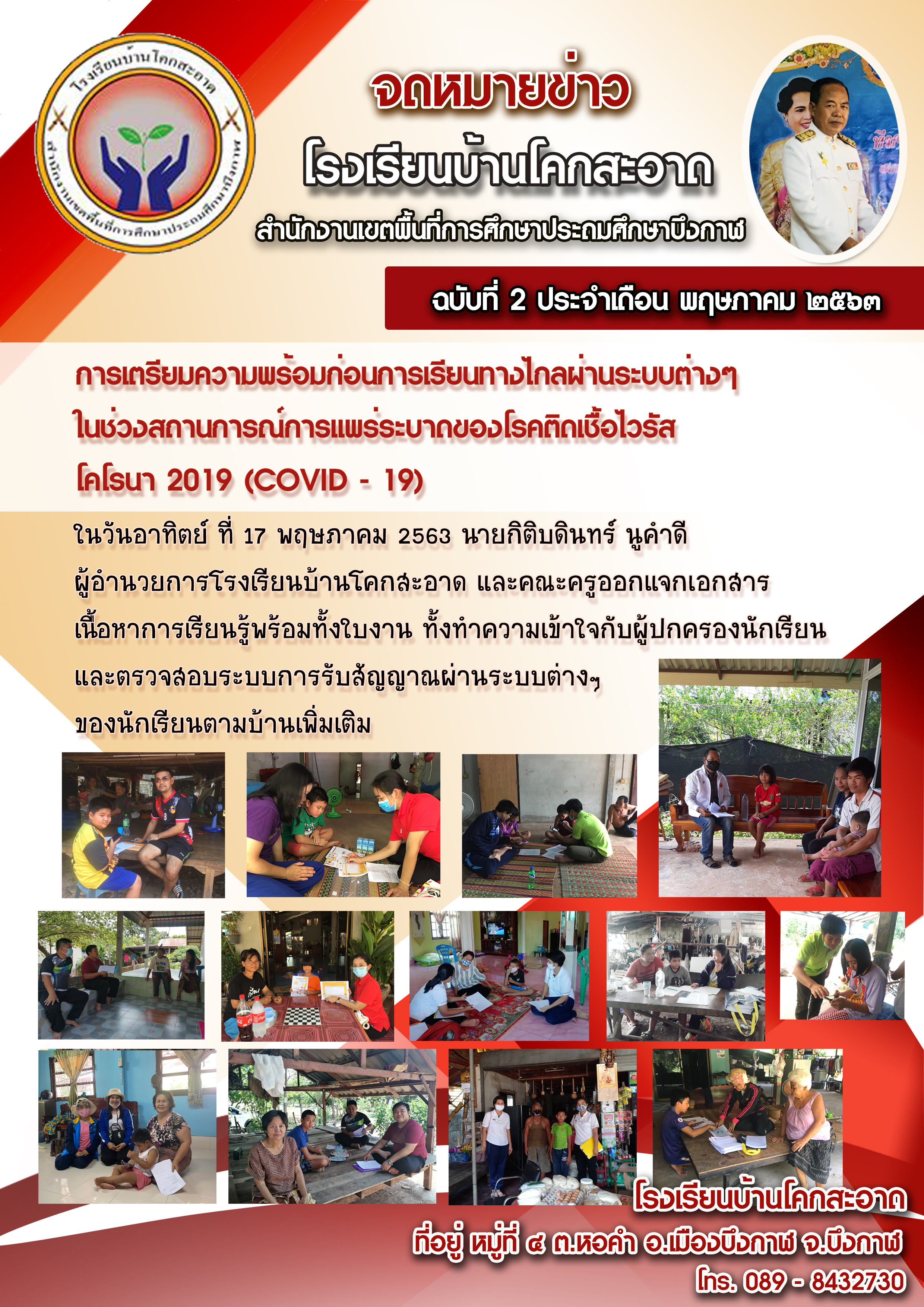 ผู้อำนวยการโรงเรียนบ้านดงชมภู พร้อมด้วยคณะครู ได้ออกเยี่ยมบ้านนักเรียนและรับฟังปัญหาในการจัดการศึกษาทางไกล