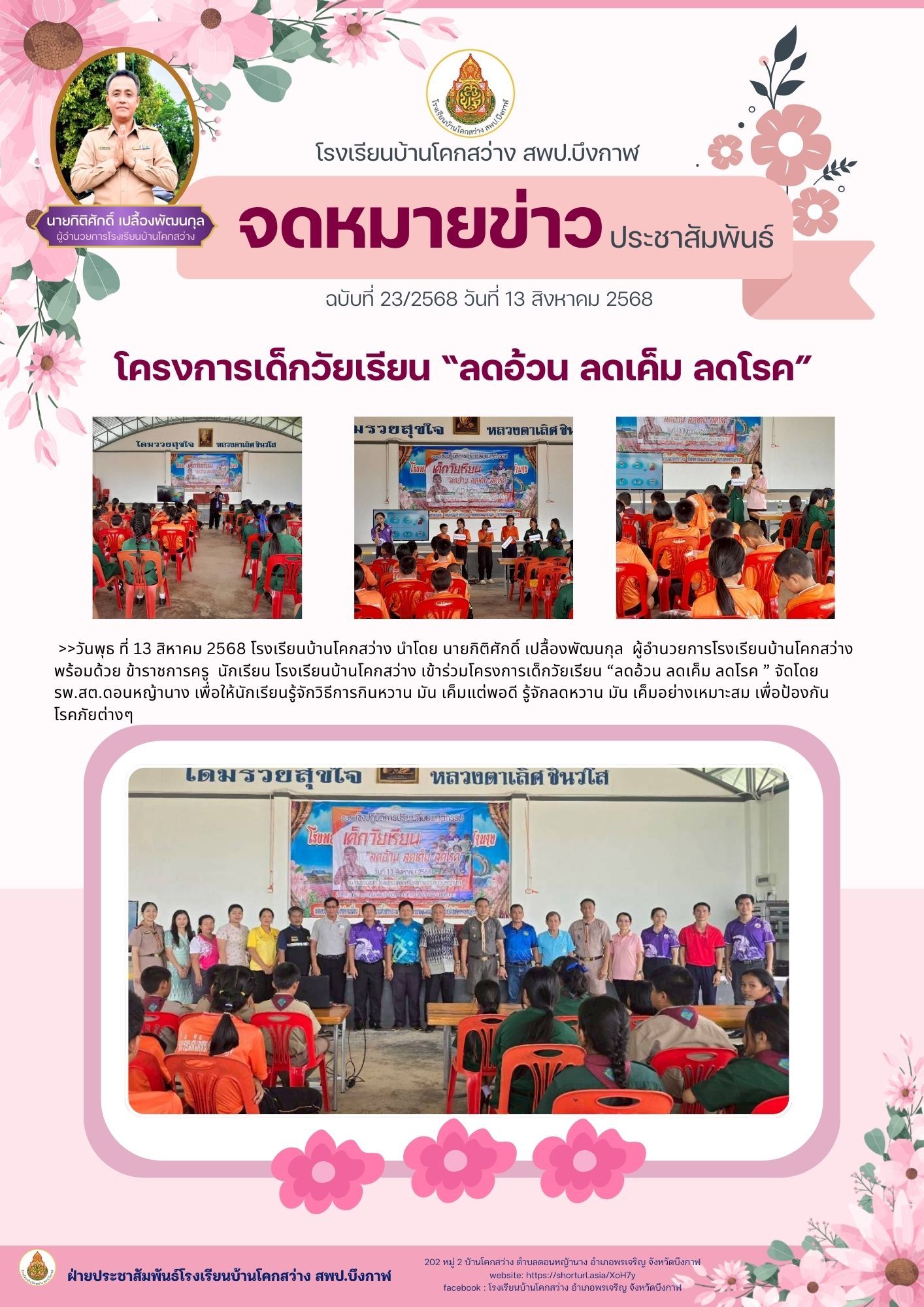 โรงเรียนบ้านโคกสว่าง ฉบับที่ 23/2568 เข้ากิจกรรมตามโครงการเด็กวัยเรียน "ลดอ้วน ลดเค็ม ลดโรค" จัดโดยโรงพยาบาลส่งเสริมสุขภาพตำบลดอนหญ้านาง เมื่อวันที่ 13 สิงหาคม 2568