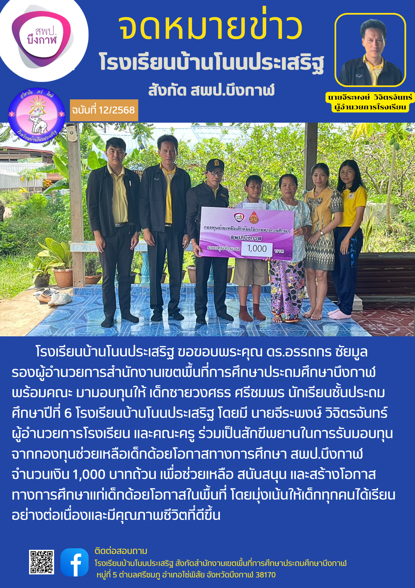กิจกรรมมอบทุนด้อยโอกาสทางการศึกษา สพป.บึงกาฬ
