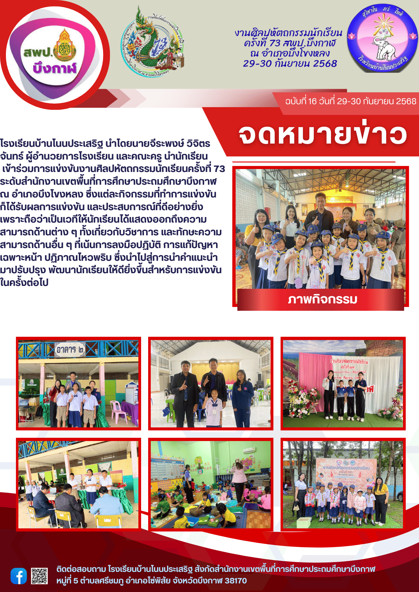 โรงเรียนบ้านไร่สุขสันต์ ได้รับรางวัล 6 เหรียญทอง 3 เหรียญเงิน การแข่งขันงานศิลปหัตถกรรมนักเรียนครั้งที่ 73 ระดับเขตพื้นที่การศึกษา