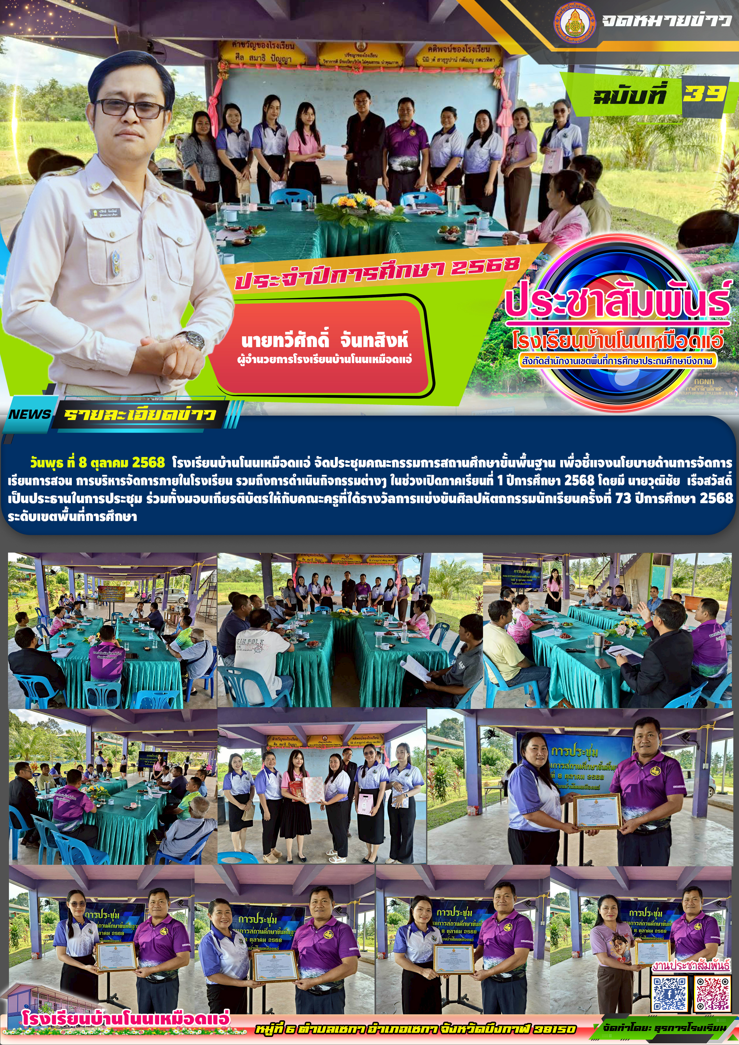 โรงเรียนบ้านโนนเหมือดแอ่ ขอประชาสัมพันธ์จดหมายข่าว ฉบับที่ 39 ปีการศึกษา 2568 การประชุมคณะกรรมการสถานศึกษาขั้นพื้นฐาน ภาคเรียนที่ 1 ปีการศึกษา 2568