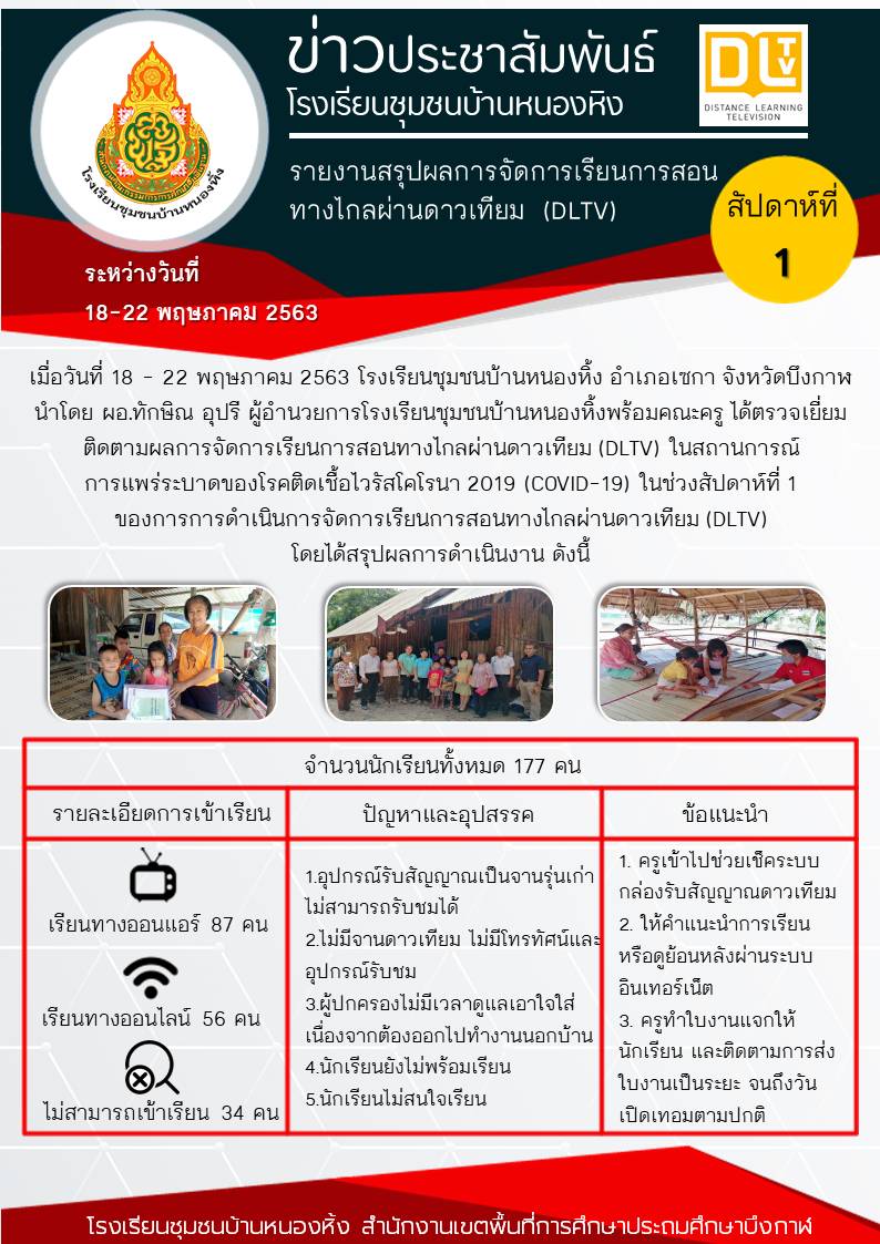 รายงานสรุปผลการจัดการเรียนการสอนทางไกลผ่านดาวเทียม(DLTV)สัปดาห์ที่1 โรงเรียนชุมชนบ้านหนองหิ้ง