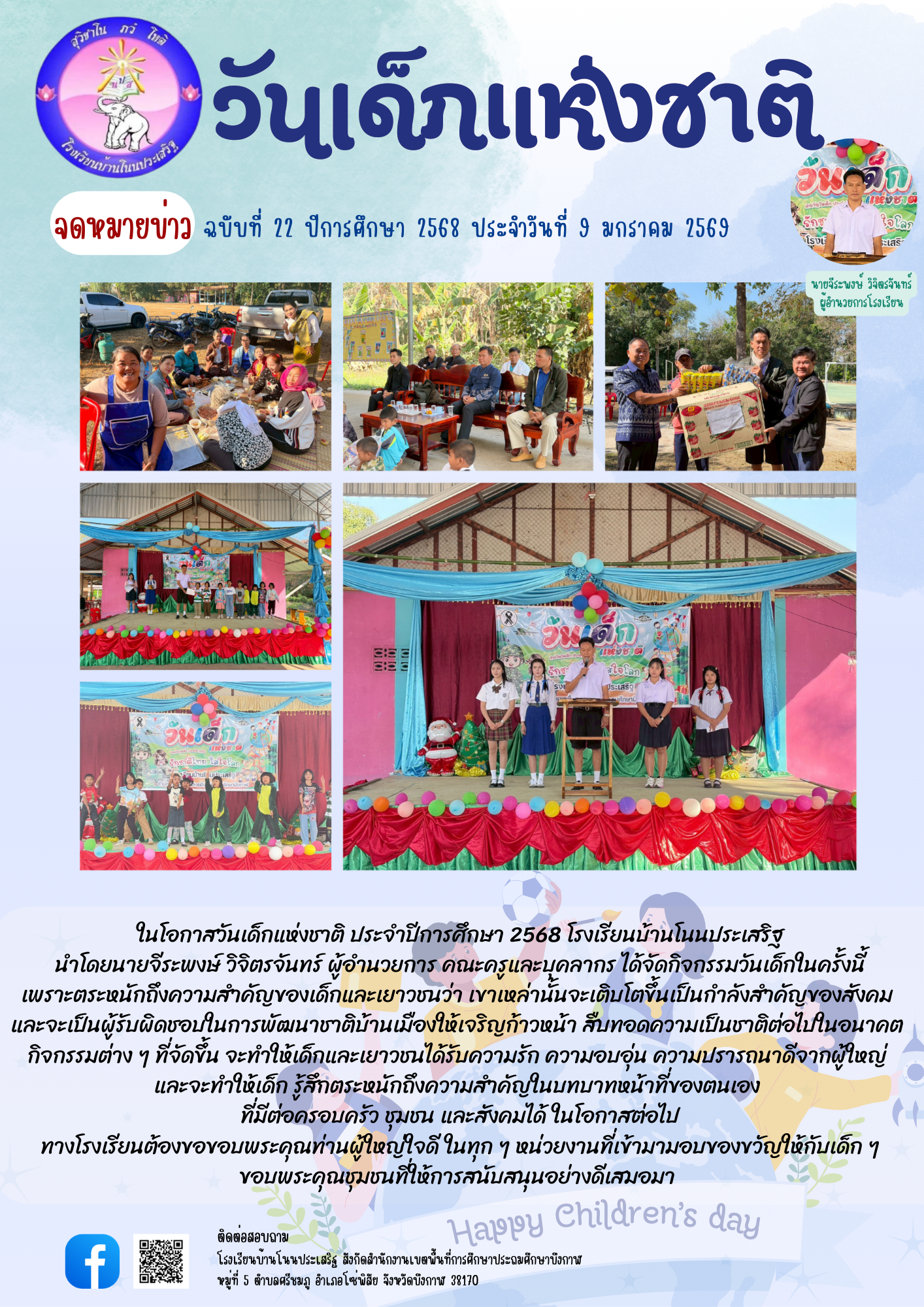 ![]() | เรื่อง กิจกรรมวันเด็กแห่งชาติ ประจำปี 2569(เผยแพร่เมื่อวันที่ 12 มค 2569 11:37:44 น.) ผู้รายงาน : ธุรการโรงเรียน บ้านโนนประเสริฐ |