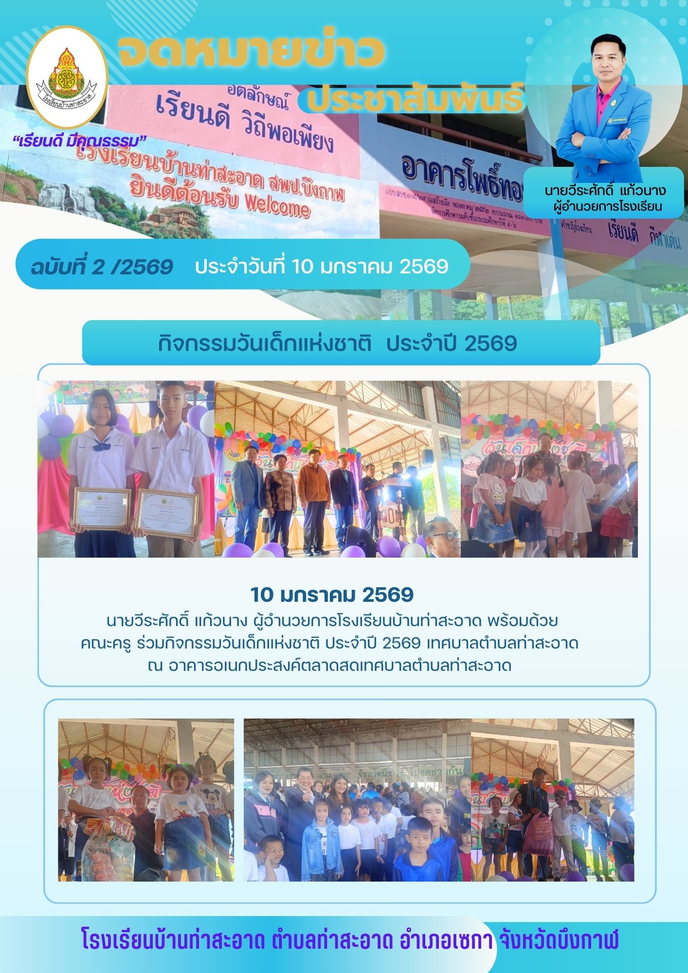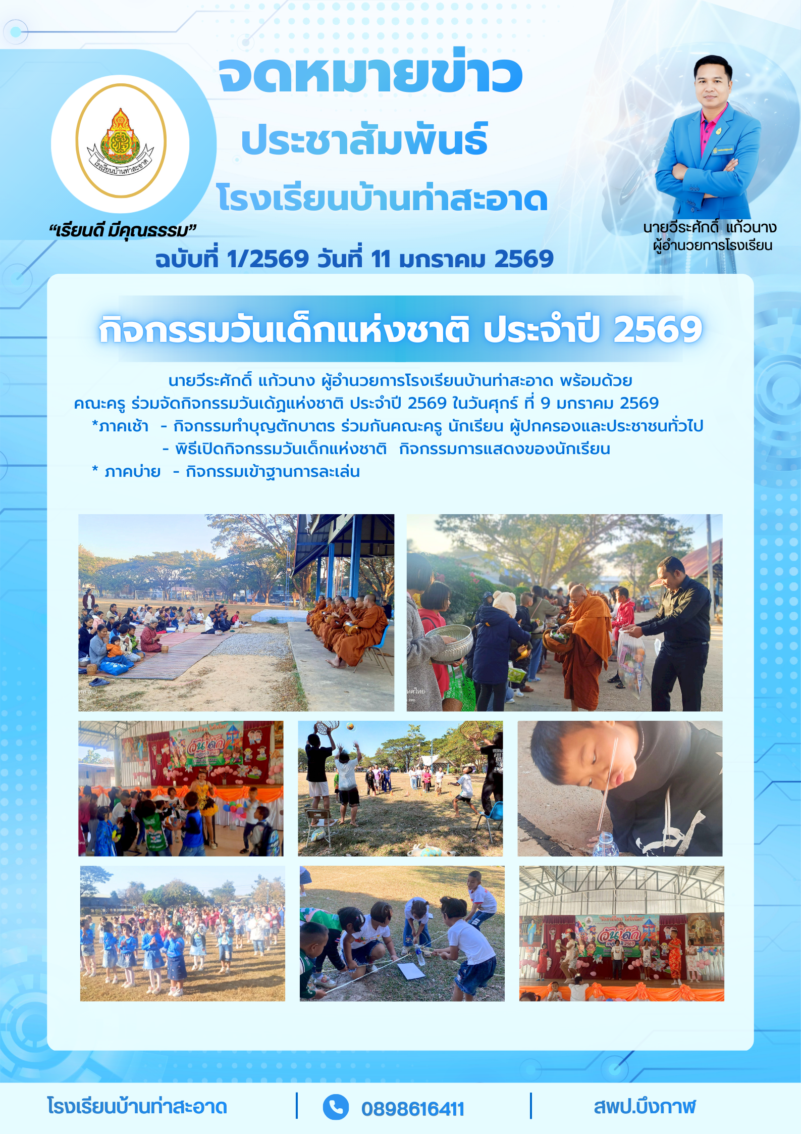 ![]() | กิจกรรมวันเด็กแห่งชาติ ประจำปี 2569 9 มกราคม 2569(เผยแพร่เมื่อวันที่ 12 มค 2569 15:20:02 น.) ผู้รายงาน : ธุรการโรงเรียน บ้านท่าสะอาด |