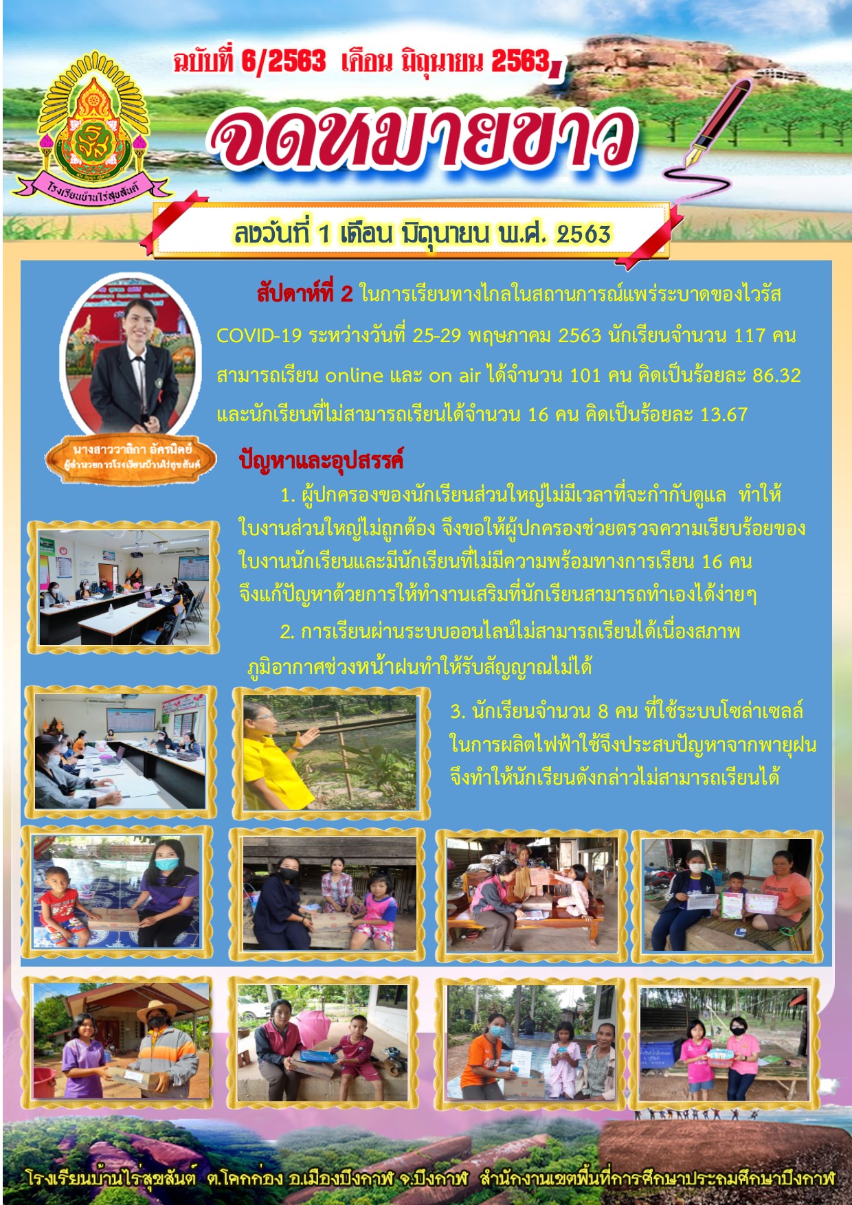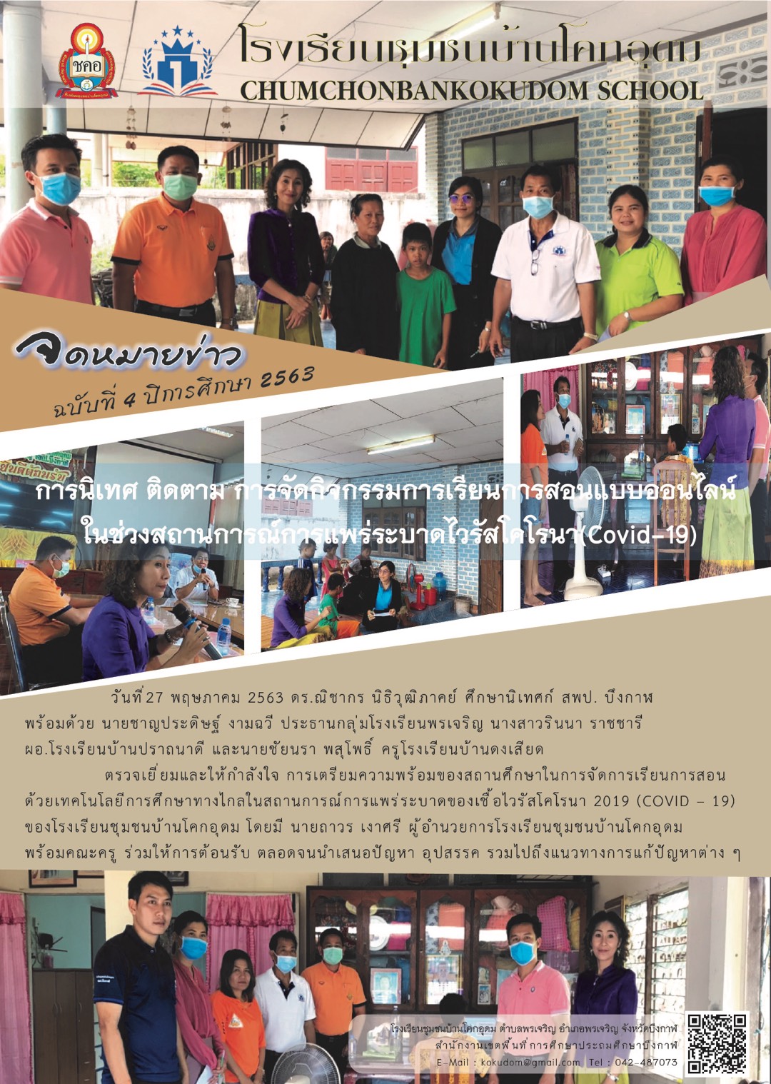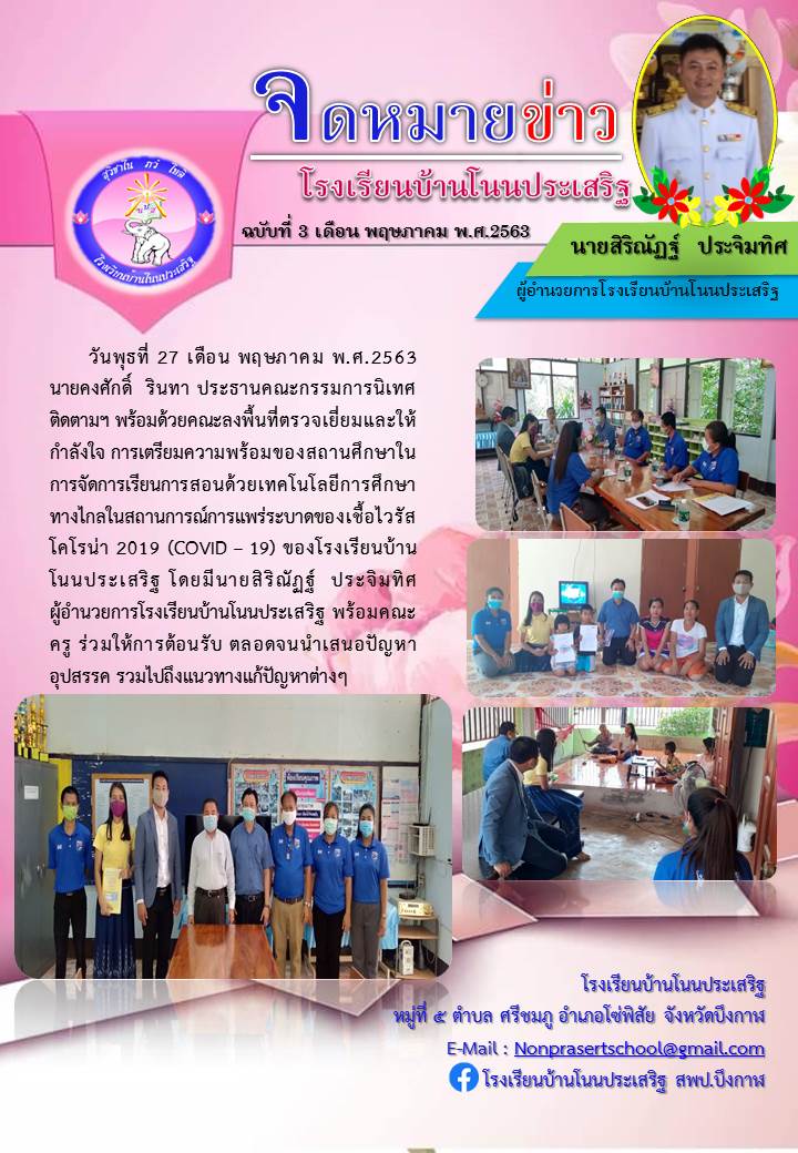 จดหมายข่าว นิเทศติดตามการจัดการเรียนการสอนทางไกลในสถานการณ์แพร่ระบาดของโรคโคโรนา ๒๐๑๙ (COVID-๑๙) โรงเรียนชุมชนบ้านโคกอุดม อ.พรเจริญ