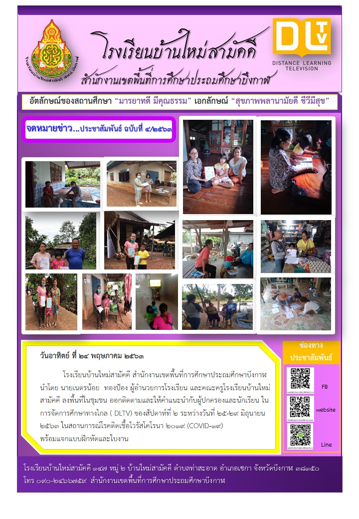จดหมายข่าวโรงเรียนบ้านนาแสง เรื่องการนิเทศติดตามการเรียนการสอนทางไกล ระหว่างวันที่ 25-29 พฤษภาคม 2563