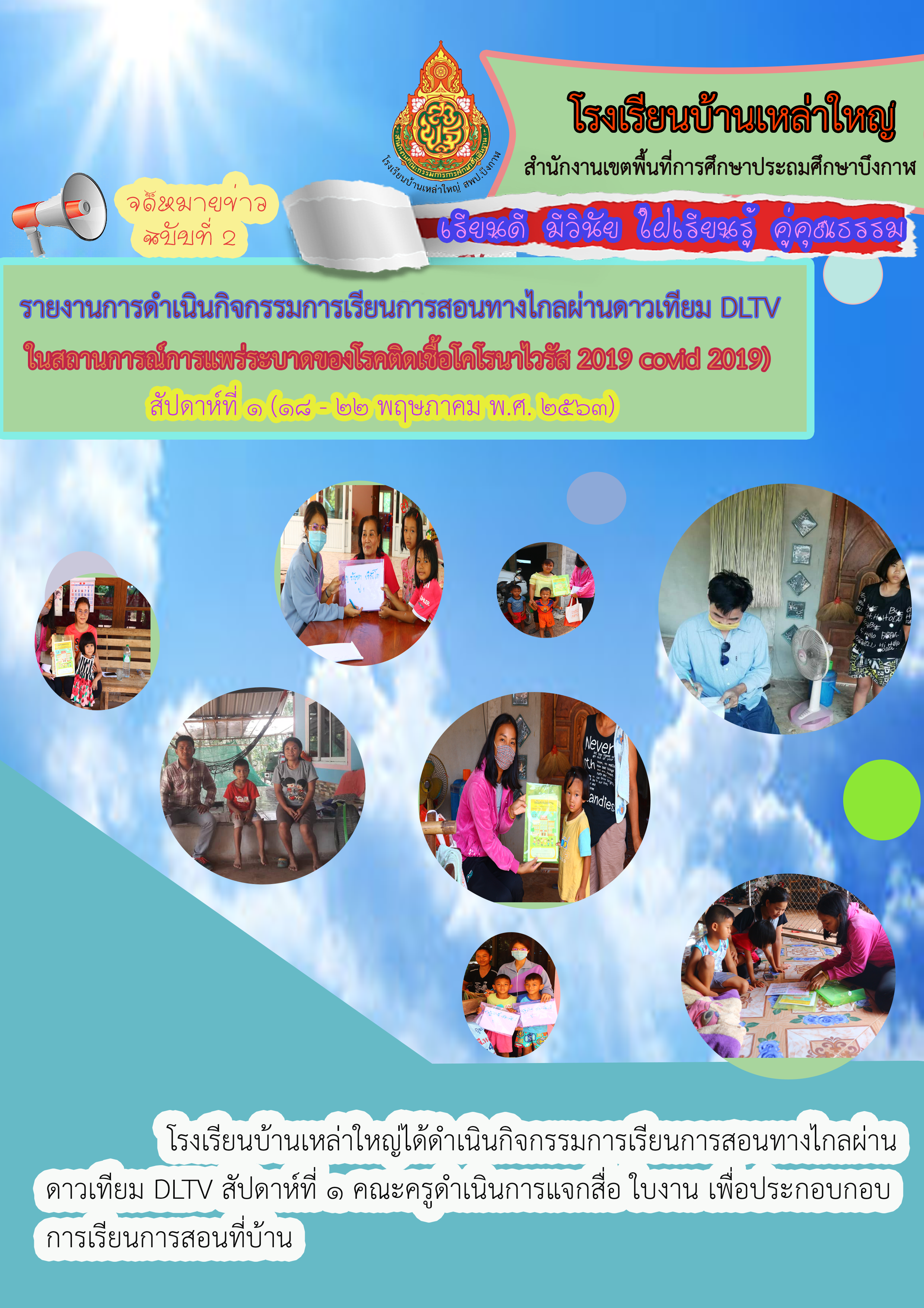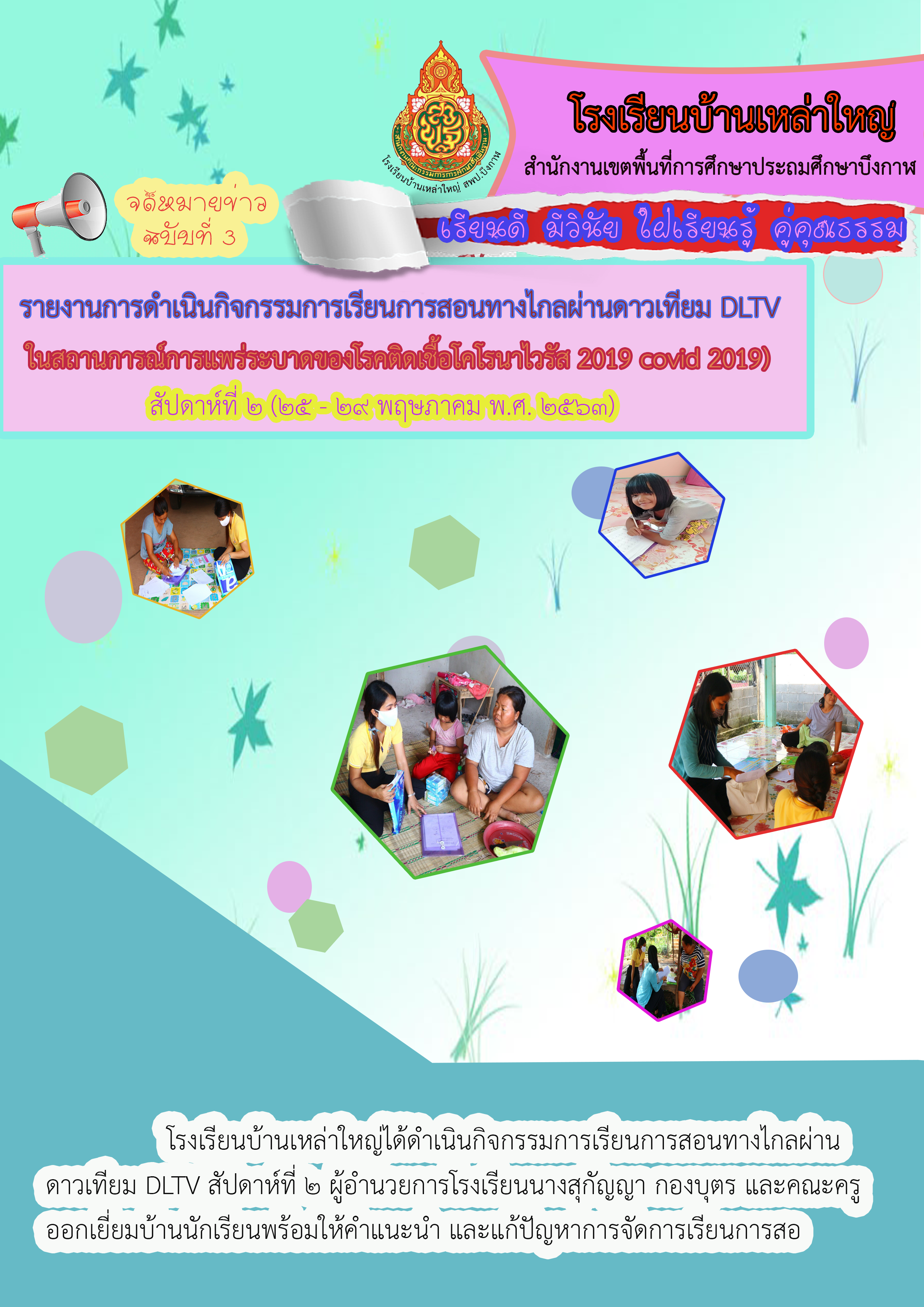 รายงานการดำเนินกิจกรรมการเรียนการสอนทางไกลผ่านดาวเทียม DLTV สัปดาห์ที่ 2 โรงเรียนบ้านเหล่าใหญ่