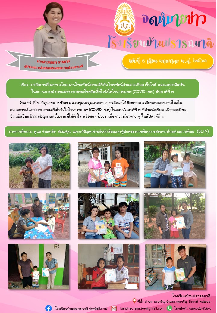 รายงานการนิเทศติดตามการเตรียมความพร้อมการจัดการเรียนการสอนด้วยเทคโนโลยีการศึกษาทางไกล ในสถานการณ์การแพร่ระบาดโรคติดต่อเชื้อไวรัสโคโรน่า 2019 (COVID-19 ) โรงเรียนบ้านปรารถนาดี สัปดาห์ที่ 3
