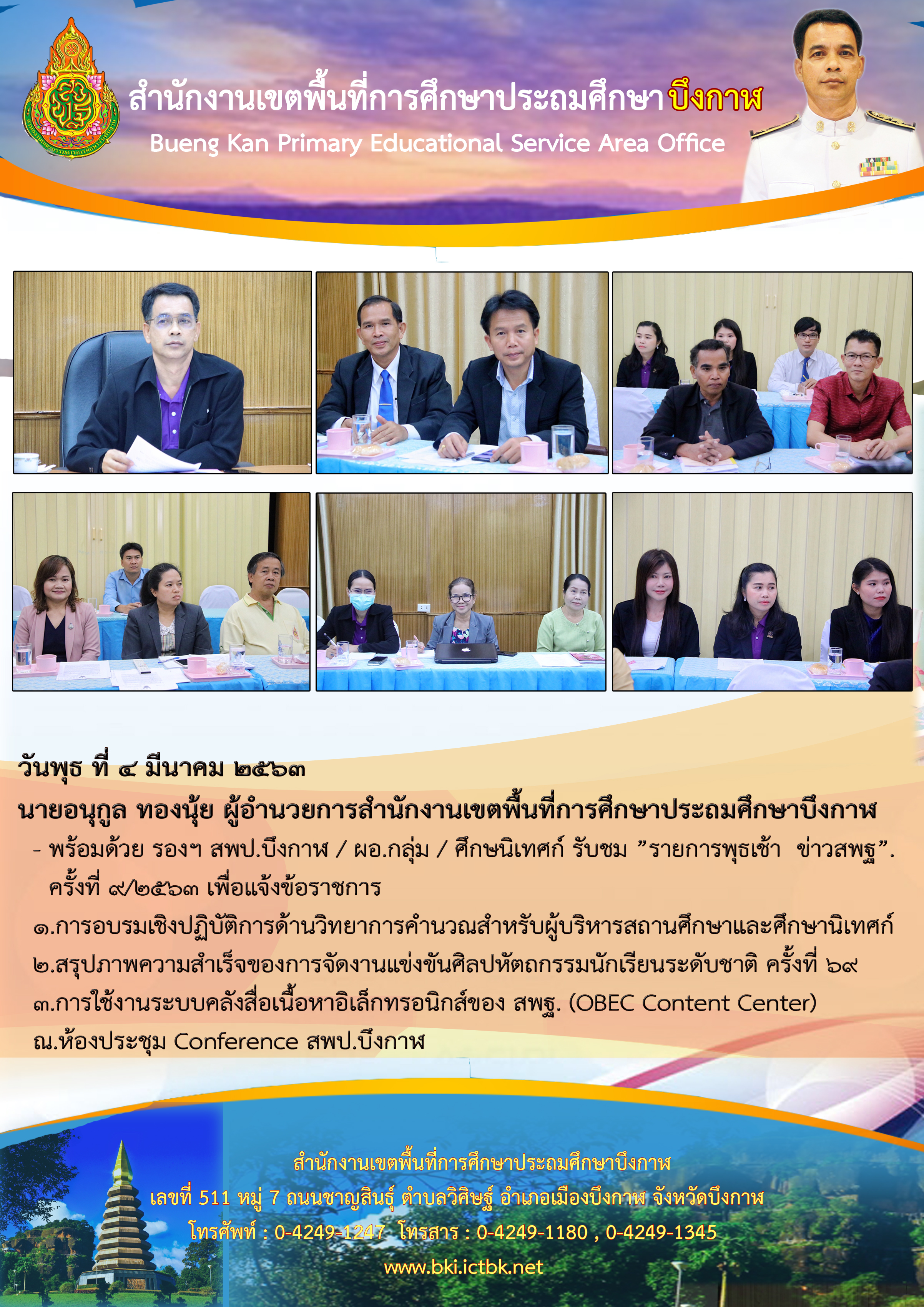 ![]() | จดหมายข่าว ประจำวันที่ 6 มีนาคม 2563 ฉบับที่1(เผยแพร่เมื่อวันที่ 8 มิย 2563 13:32:45 น.) ผู้รายงาน : นายณัฐวัช อรัญมิ่ง |