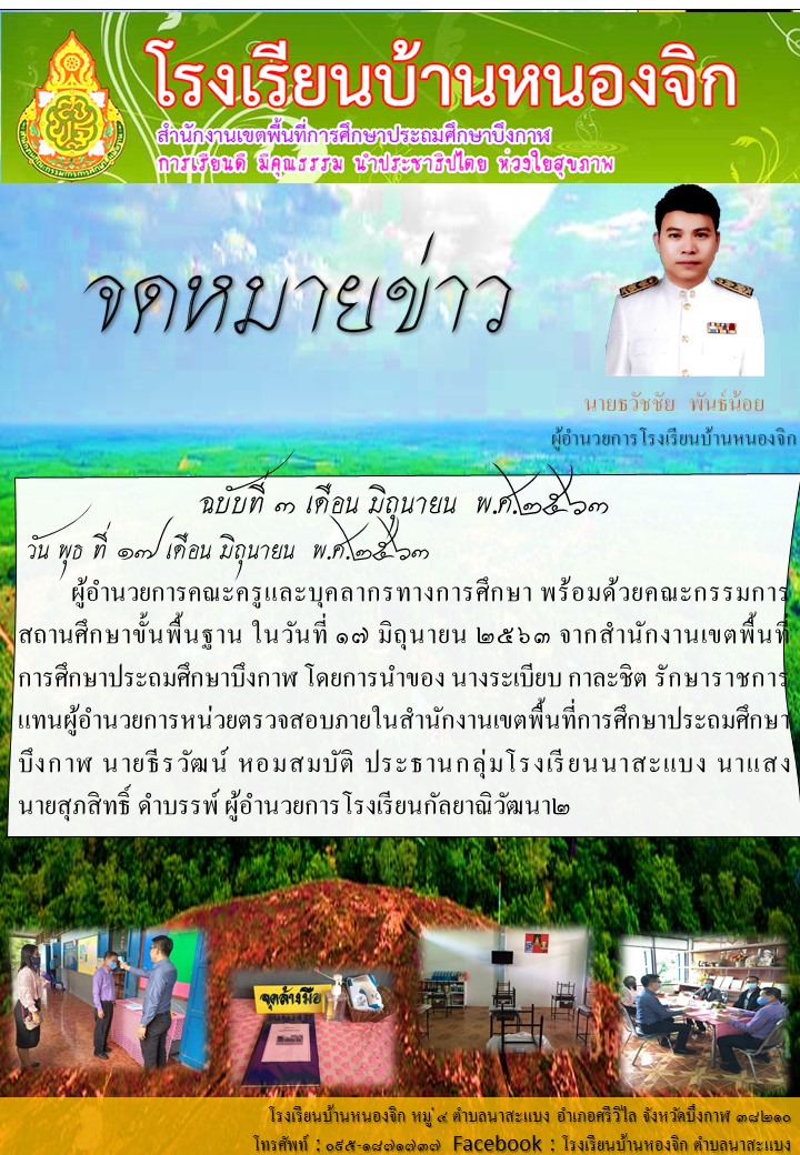 (เผยแพร่เมื่อวันที่ 19 มิย 2563 16:30:20 น.) ผู้รายงาน : ธุรการโรงเรียน บ้านหนองจิก