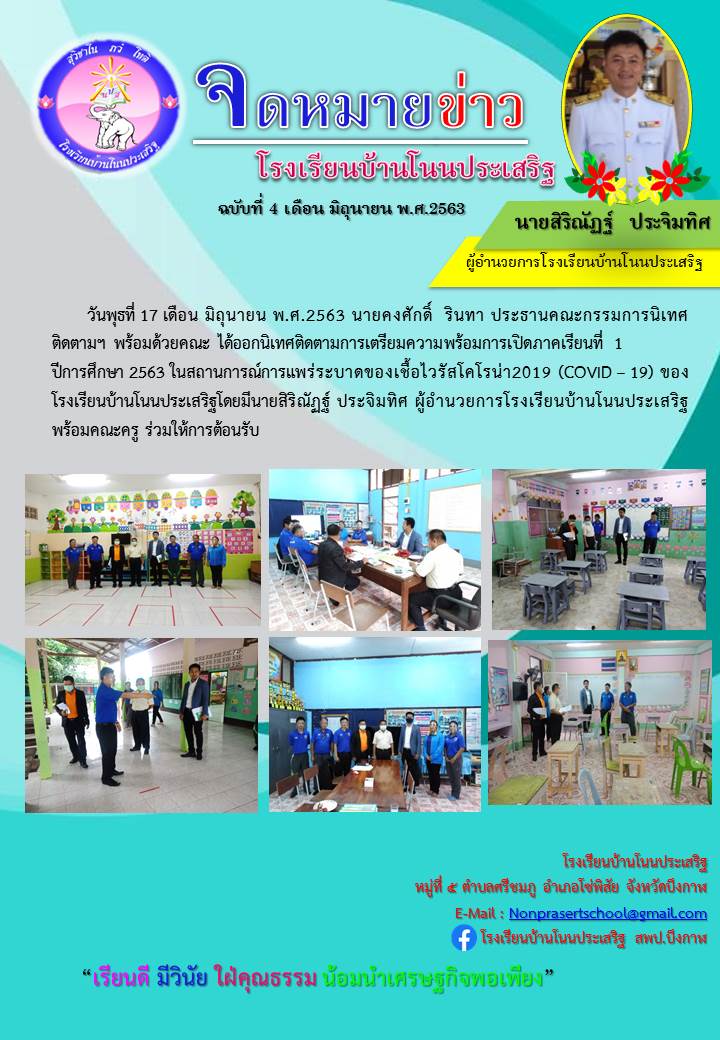 การตรวจเยี่ยมการเตรียมความพร้อมก่อนเปิดภาคเรียนที่ 1 ปีการศึกษา 2563 เพื่อเฝ้าระวังและป้องกันการแพร่ระบาด ของโรคโคโรนา 2019 (COVID -19) ของโรงเรียนบ้านโนนประเสริฐ