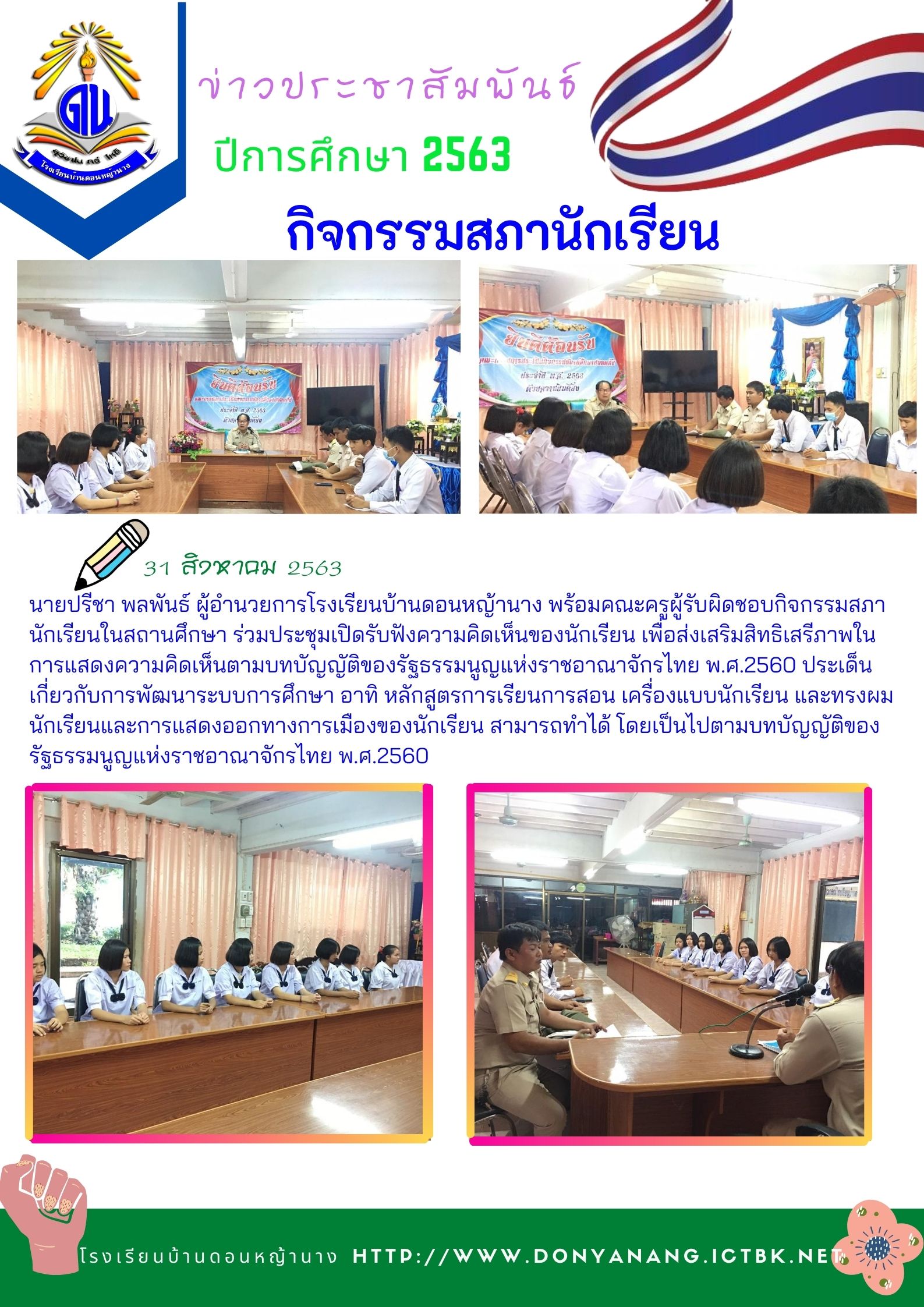 การดำเนินกิจกรรมสภานักเรียนโรงเรียนบ้านดอนหญ้านาง