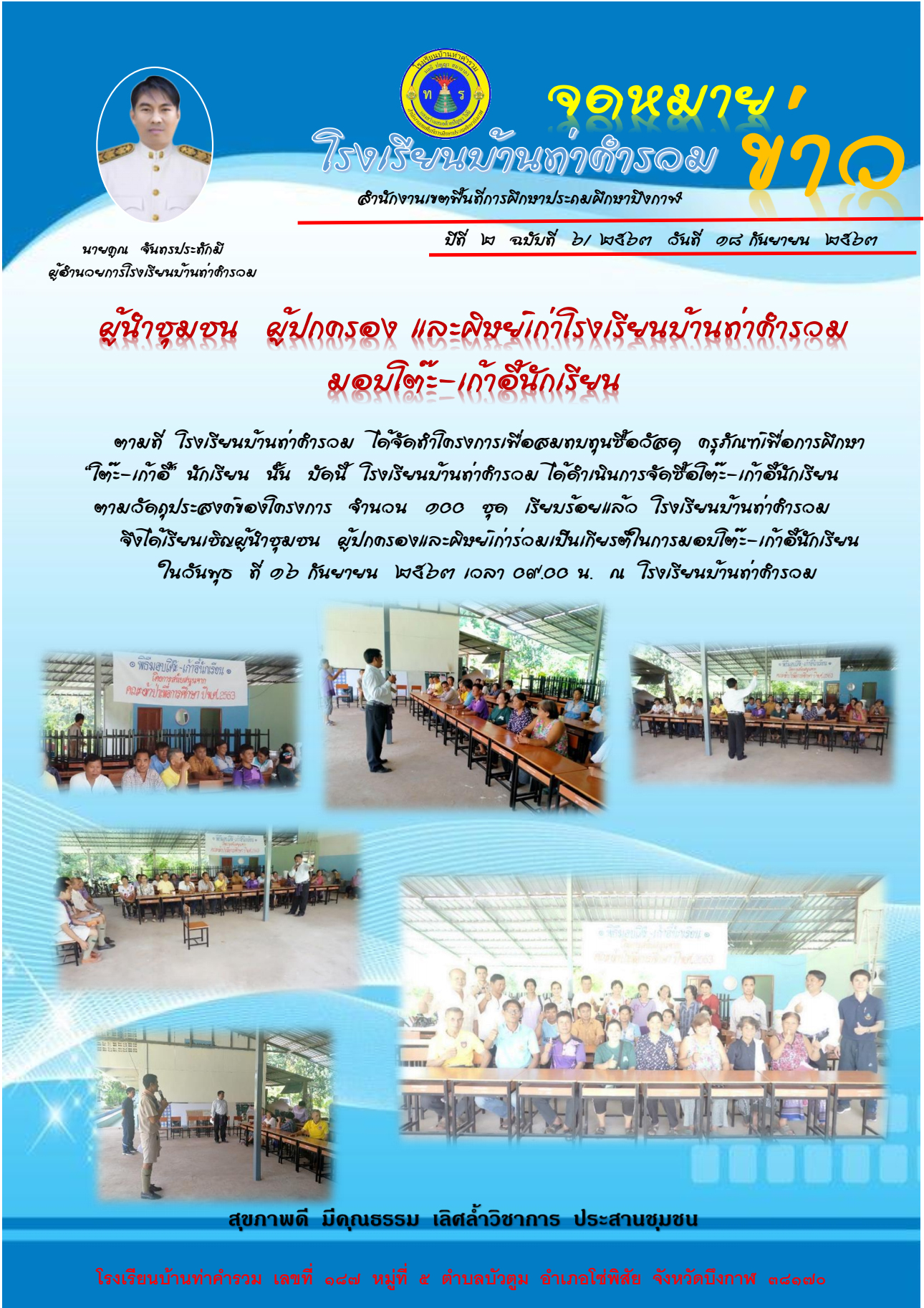 ผู้นำชุมชน ผู้ปกครอง และศิษย์เก่าโรงเรียนบ้านท่าคำรวม มอบโต๊ะ-เก้าอี้นักเรียน