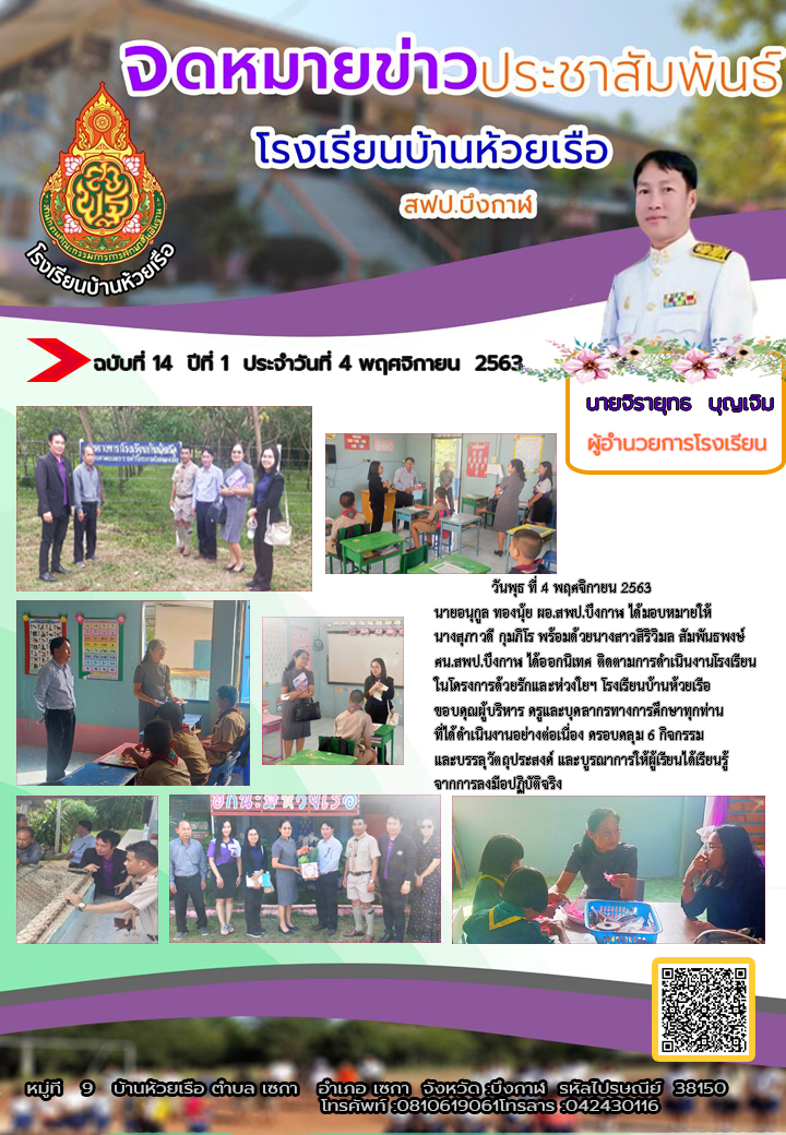 ![]() | ติดตามการดำเนินงานโรงเรียนในโครงการด้วยรักและห่วงใยฯโรงเรียนบ้านห้วยเรือ (เผยแพร่เมื่อวันที่ 5 พย 2563 11:18:54 น.) ผู้รายงาน : ธุรการโรงเรียน บ้านห้วยเรือ |