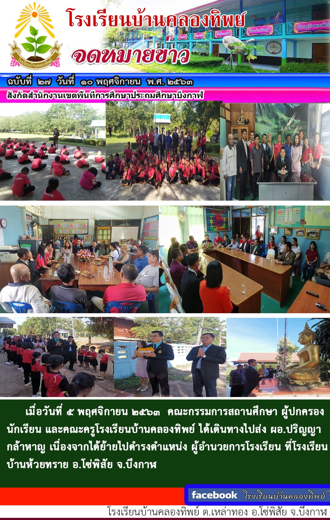 (เผยแพร่เมื่อวันที่ 10 พย 2563 14:29:08 น.) ผู้รายงาน : ธุรการโรงเรียน บ้านคลองทิพย์