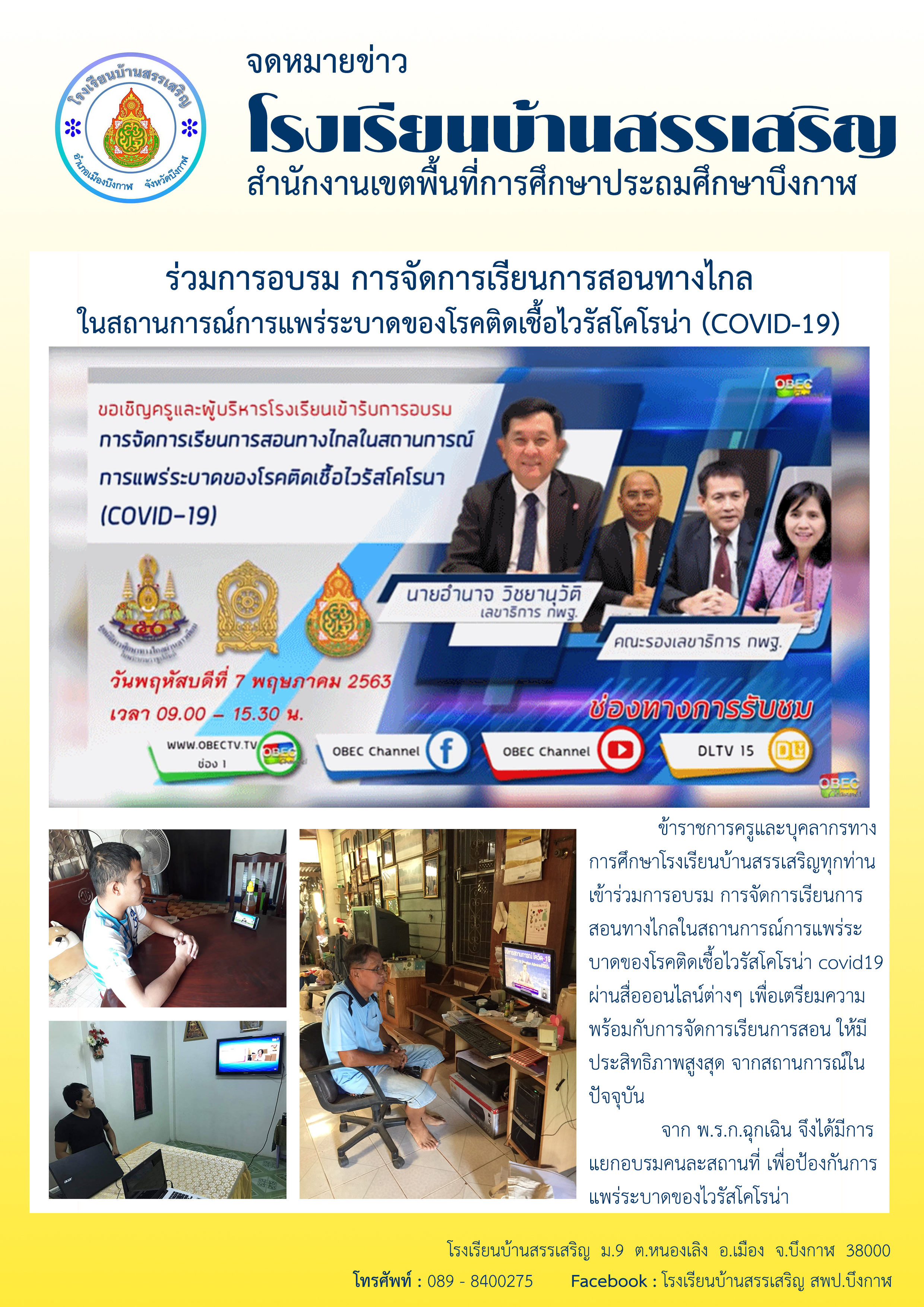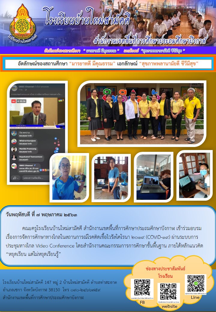การอบรมการจัดการเรียนการสอนทางไกล ในสถานการณ์การแพร่ระบาดของเชื้อไวรัสโคโรนา 2019 (COVID19) โรงเรียนบ้านใหม่ศรีชมภู