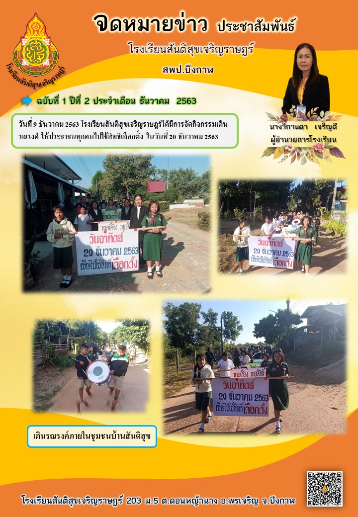![]() | กิจกรรมเดินรณรงค์ ใช้สิทธิเลือกตั้ง ธันวาคม 2563 โรงเรียนสันติสุขเจริญราษฎร์(เผยแพร่เมื่อวันที่ 10 ธค 2563 09:15:24 น.) ผู้รายงาน : ธุรการโรงเรียน สันติสุขเจริญราษฎร์ |