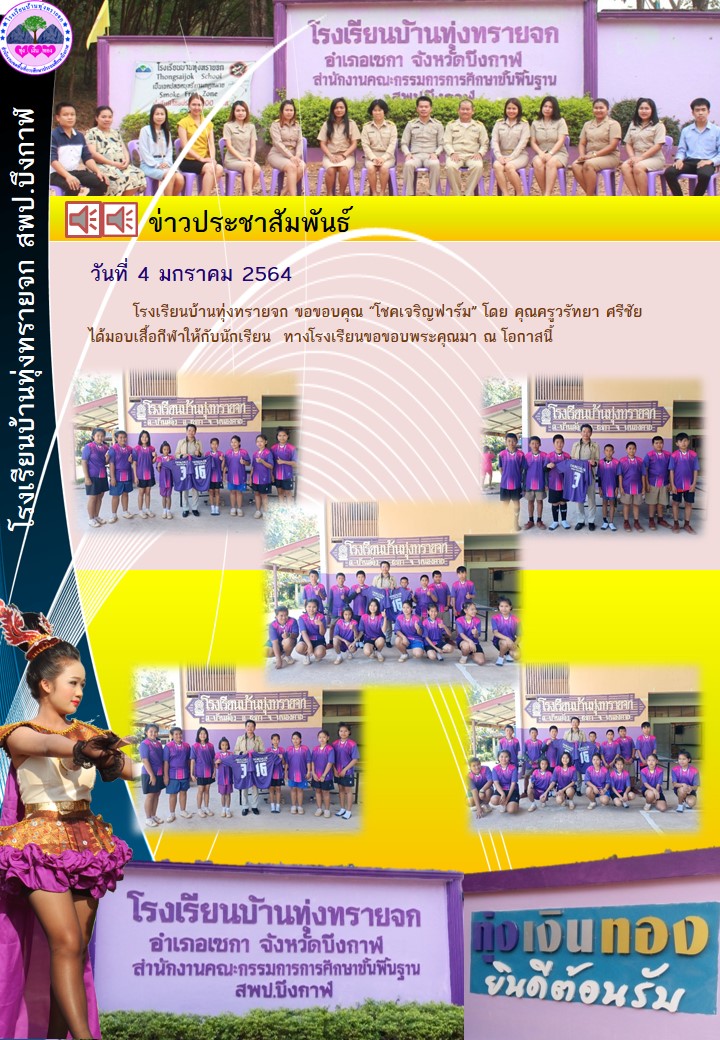 ขอขอบคุณ "โชคเจริญฟาร์ม" มอบสื้อกีฬาให้นักเรียน (โรงเรียนบ้านทุ่งทรายจก)