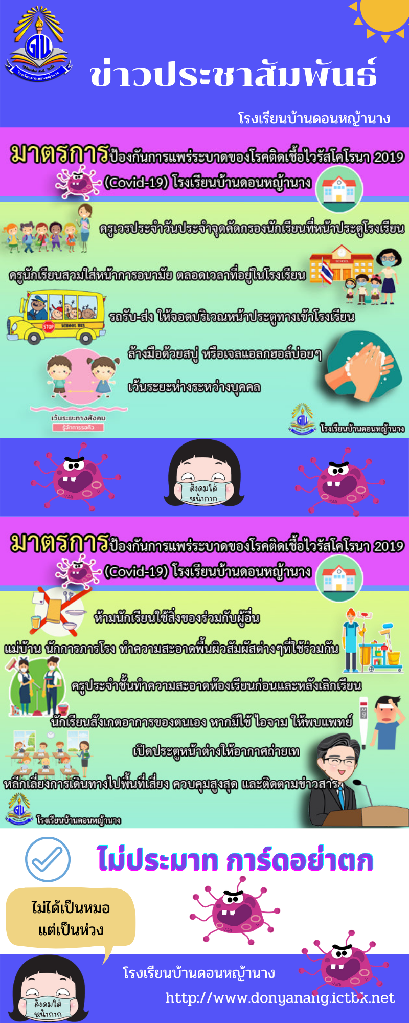 มาตรการป้องกันการแพร่ระบาดของโรคติดเชื้อไวรัส โคโรนา 2019 (Covid-19) ของโรงเรียนบ้านดอนหญ้านาง