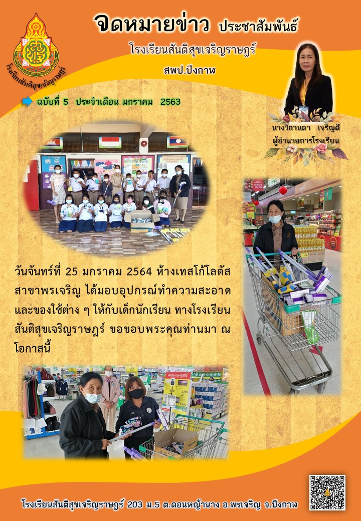 ขอขอบพระคุณเทสโก้โลตัส ที่มอบอุปกรณ์ทำความสะอาด และของใช้ต่างๆ ให้นักเรียน โรงเรียนสันติสุขเจริญราษฎร์