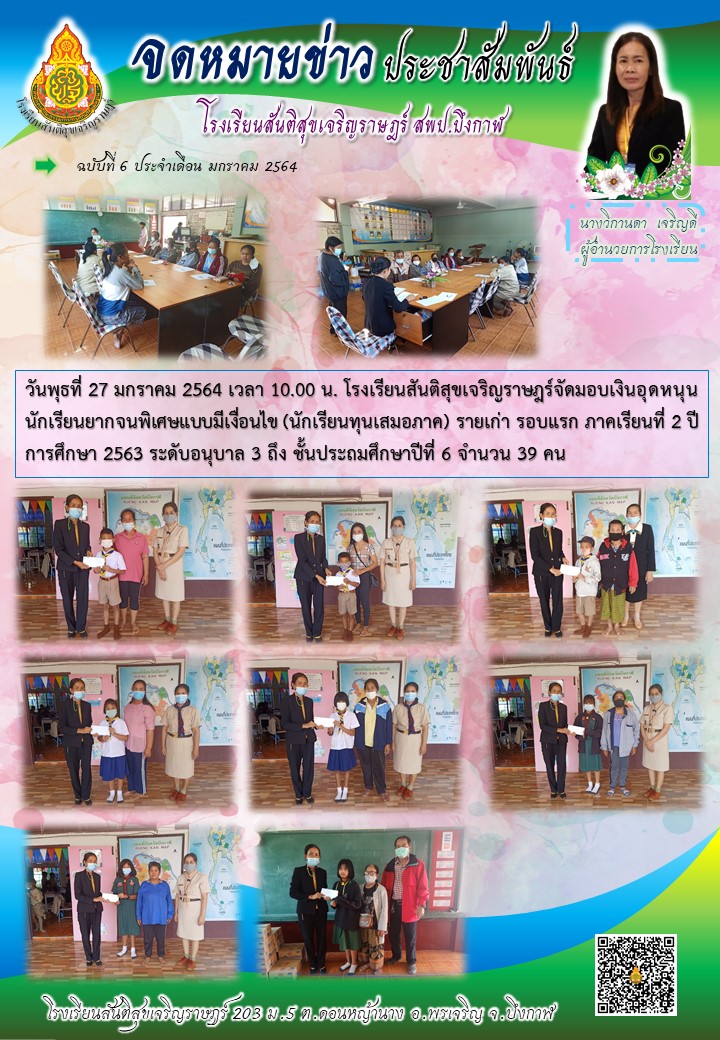 มอบเงินอุดหนุนนักเรียนยากจนพิเศษแบบมีเงื่อนไข (นักเรียนทุนเสมอภาค) รายเก่า รอบแรก ภาคเรียนที่ 2 ปีการศึกษา 2563 โรงเรียนสันติสุขเจริญราษฎร์