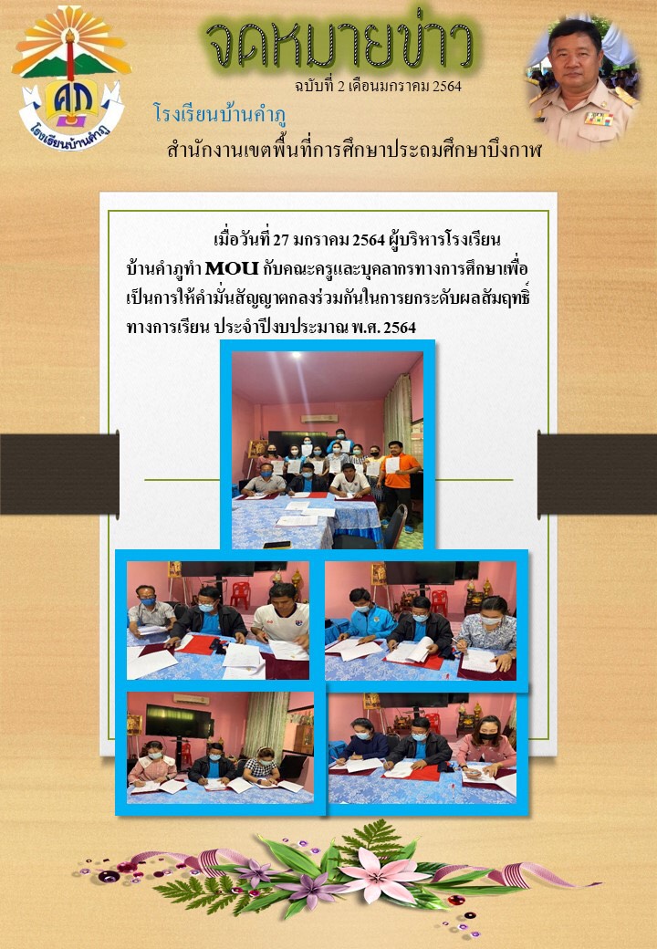 ผู้บริหารโรงเรียนบ้านคำภูทำMOUกับคณะครูและบุคลากรทางการศึกษาโรงเรียนบ้านคำภู
