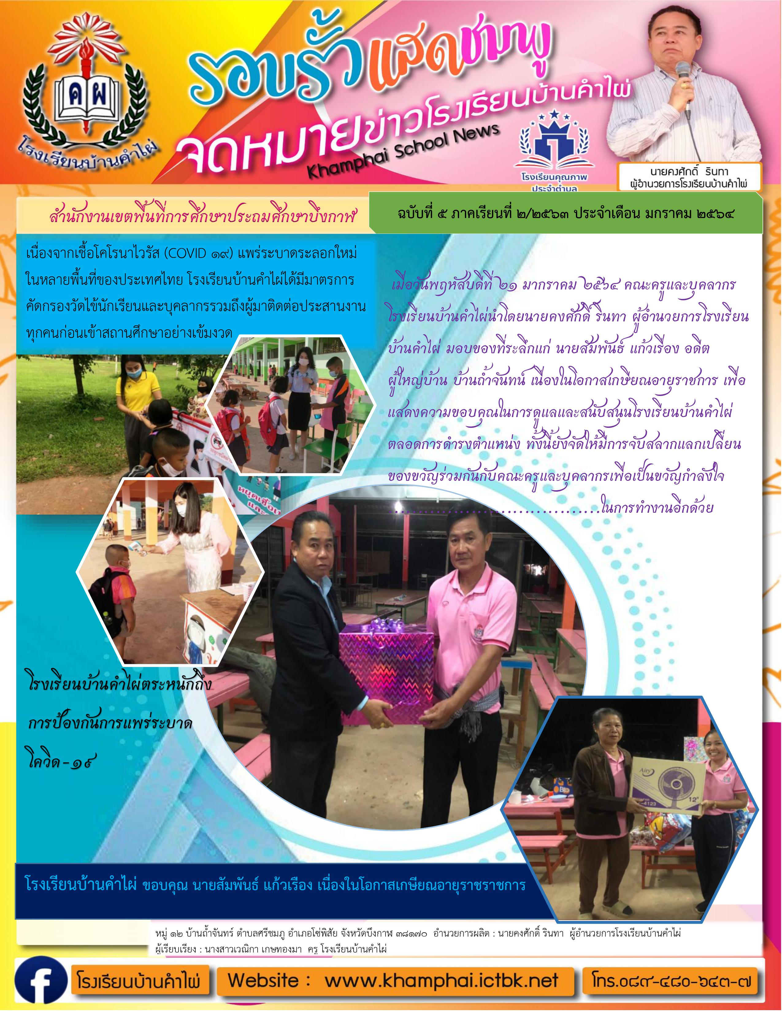 | จดหมายข่าว ประจำเดือนมกราคม โรงเรียนบ้านคำแวง(เผยแพร่เมื่อวันที่ 4 กพ 2564 10:17:32 น.) ผู้รายงาน : ธุรการโรงเรียน บ้านคำแวง | |