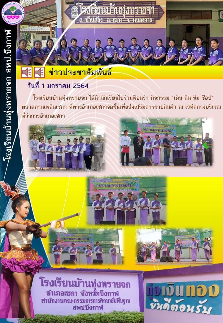 โรงเรียนบ้านทุ่งทรายจก-นำนักเรียนเไปฟ้อนรำ กิจกรรม "เดิน กิน ชิม ช๊อป" ตลาดลานเพลินเซกา