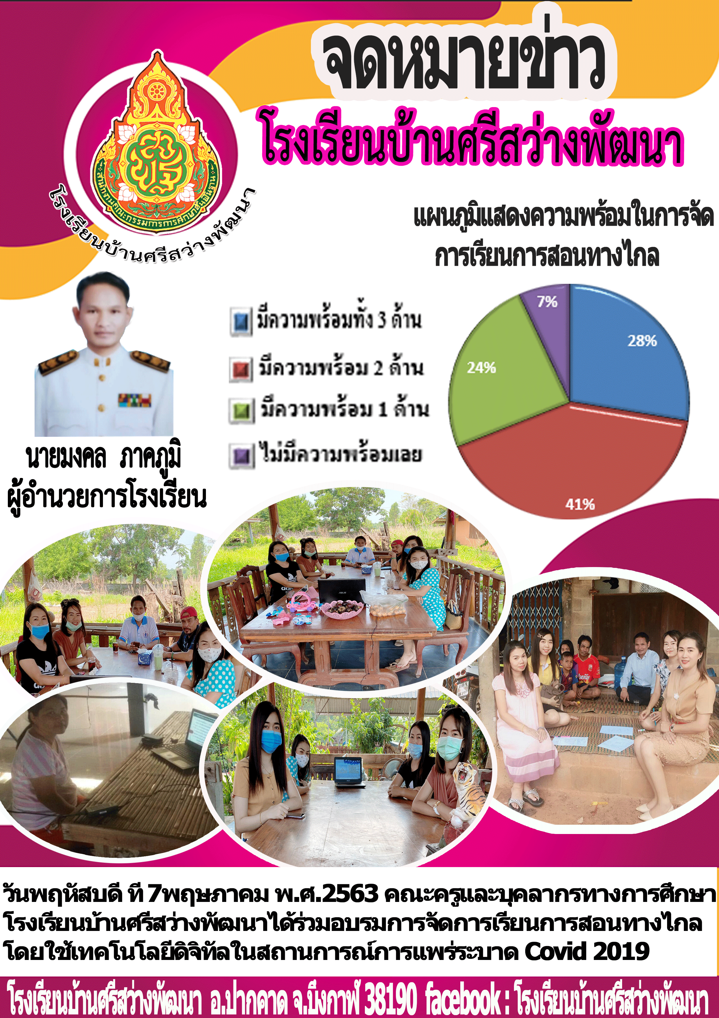 สรุปภาพรวมการอบรมการจัดการเรียนการสอนทางไกลในสถานการณ์แพร่ระบาดของโรคติดเชื้อไวรัสโคโรนา ๒๐๑๙ โรงเรียนบ้านศรีสว่างพัฒนา
