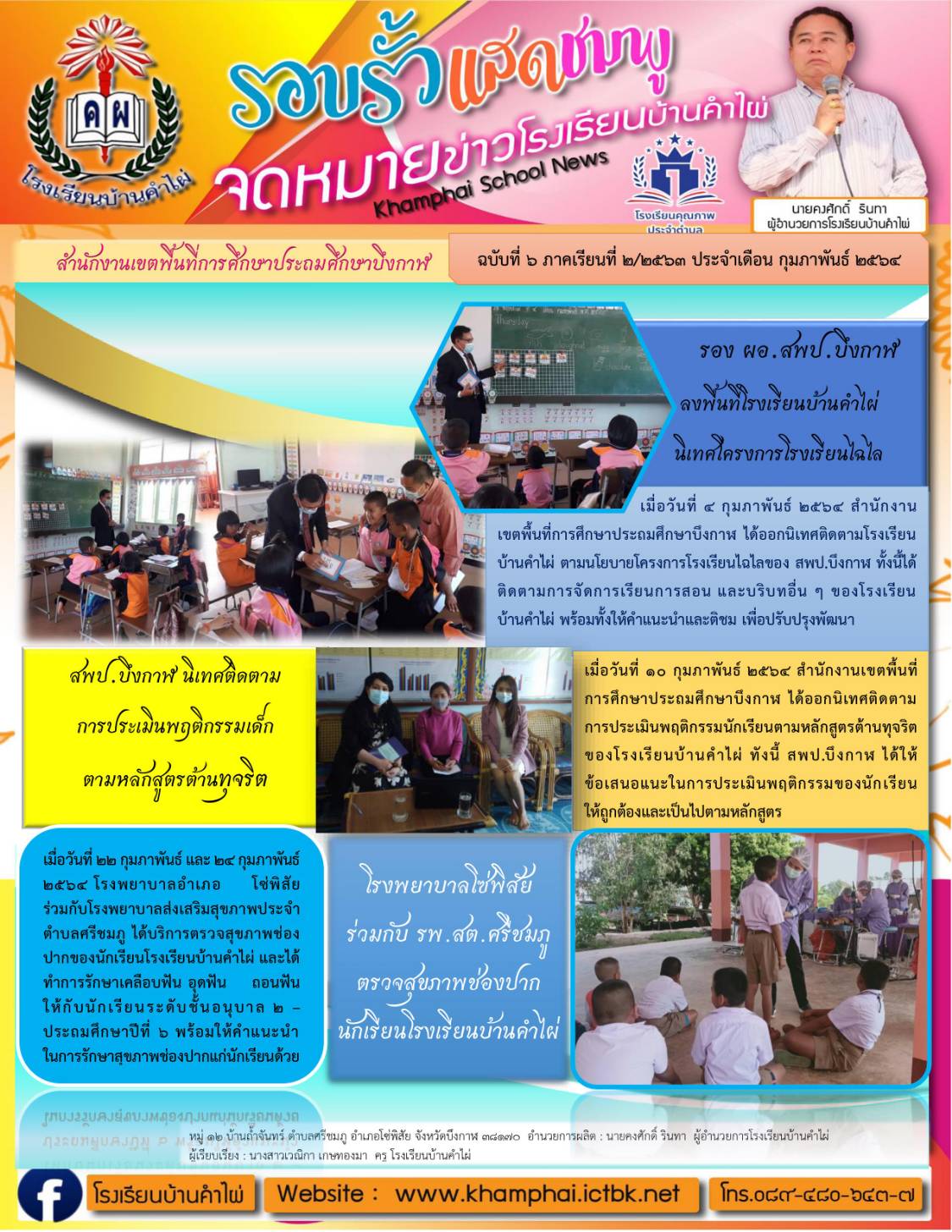 ![]() | จดหมายข่าวประจำเดือนกุมภาพันธ์โรงเรียนบ้านคำไผ่(เผยแพร่เมื่อวันที่ 1 มีค 2564 08:17:33 น.) ผู้รายงาน : ธุรการโรงเรียน บ้านคำไผ่ |