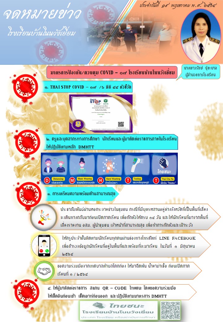 จดหมายข่าว - โรงเรียนบ้านโนนวังเยี่ยม ประจำวันที่ 19 พฤษภาคม 2564