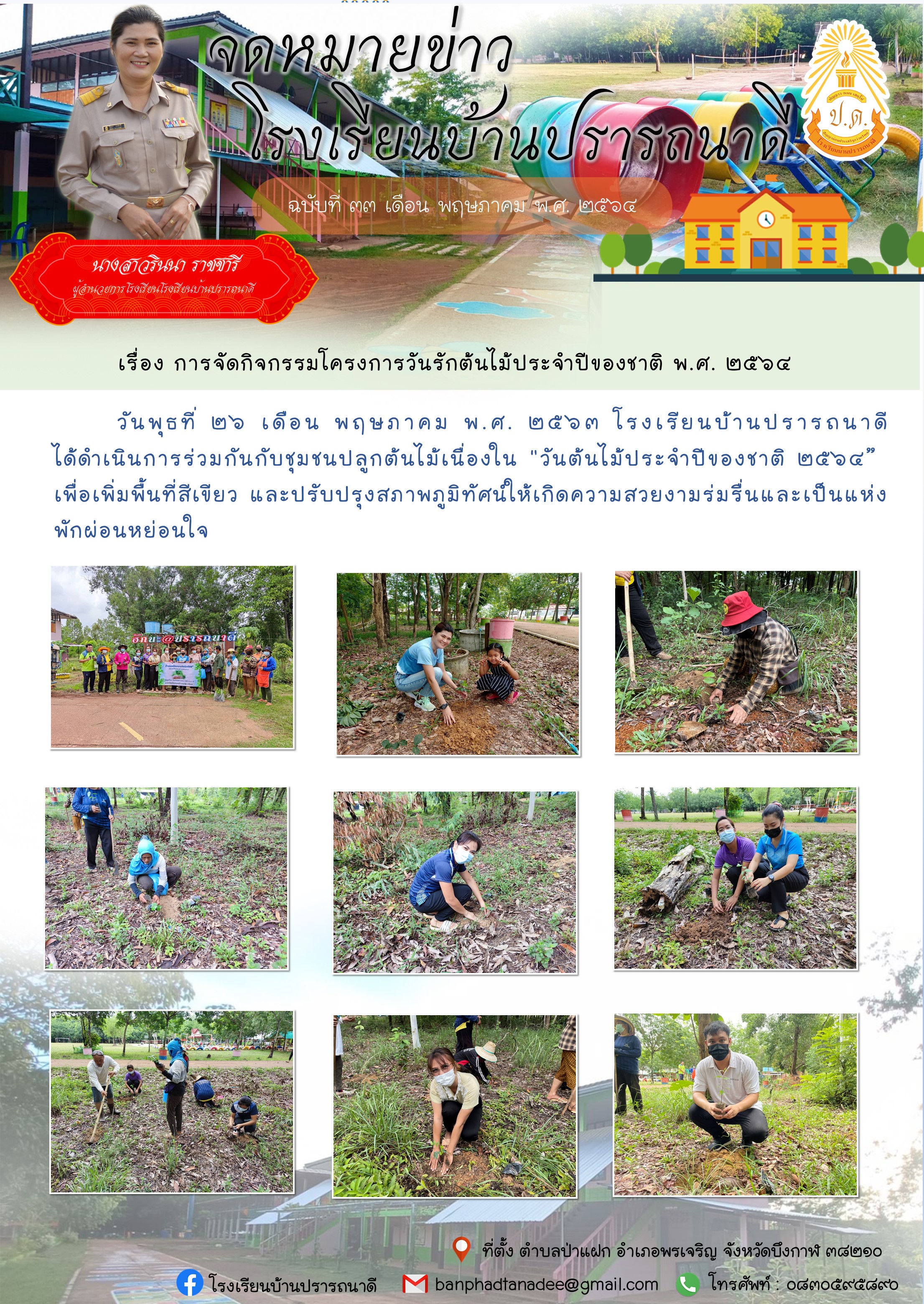 จดหมายข่าว โรงเรียนบ้านปรารถนาดี เรื่อง การจัดกิจกรรมโครงการวันรักต้นไม้ประจำปีของชาติ