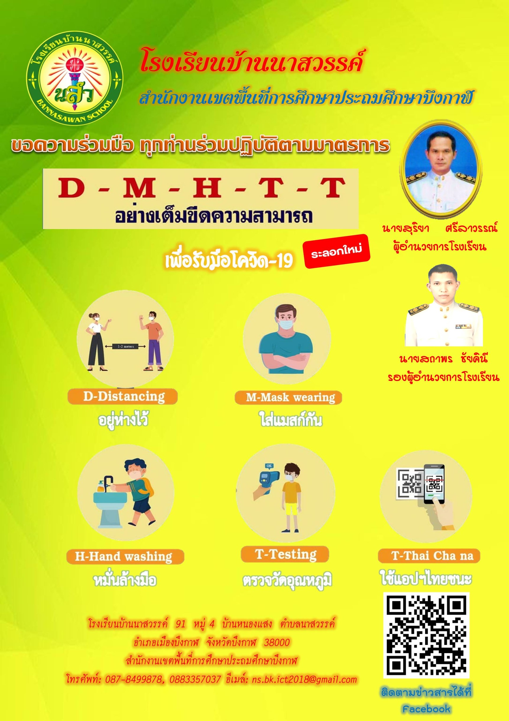 โรงเรียนบ้านนาสวรรค์ ประชาสัมพันธ์ขอความร่วมมือปฎิบัติตามมาตรการ D-M-H-T-T เพื่อป้องกันการแพร่ระบาดของโรคติดเชื้อไวรัสโคโรนา 2019