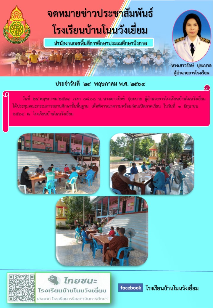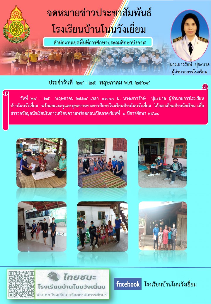 จดหมายข่าว โรงเรียนบ้านโนนวังเยี่ยม ประจำวันที่ 24 พฤษภาคม 2564