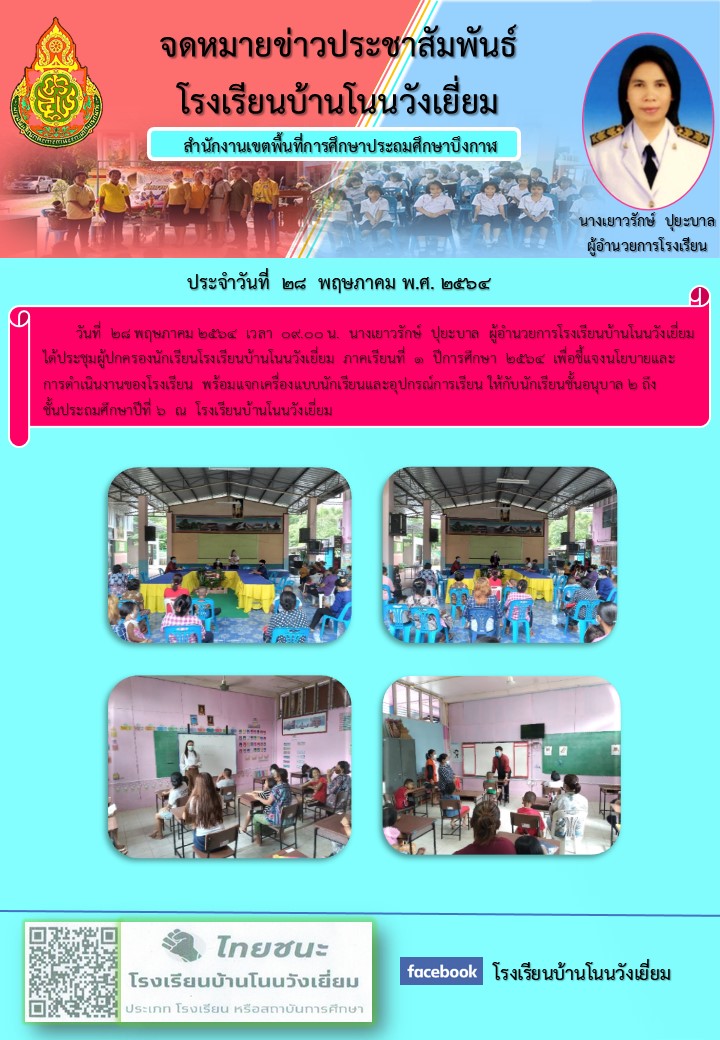 (เผยแพร่เมื่อวันที่ 1 มิย 2564 12:51:47 น.) ผู้รายงาน : ธุรการโรงเรียน บ้านโนนวังเยี่ยม
