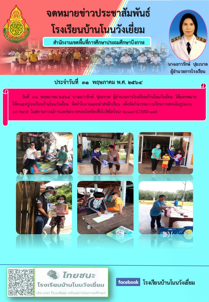 จดหมายข่าว โรงเรียนบ้านโนนวังเยี่ยม ประจำวันที่ 31 พฤษภาคม 2564