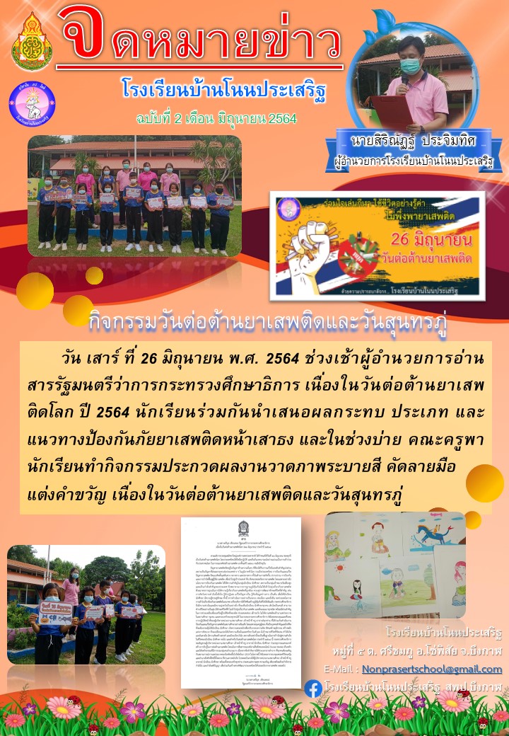 ![]() | โรงเรียนบ้านโนนประเสริฐ กิจกรรมวันต่อต้านยาเสพติดและวันสุนทรภู่(เผยแพร่เมื่อวันที่ 6 กค 2564 13:08:03 น.) ผู้รายงาน : ธุรการโรงเรียน บ้านโนนประเสริฐ |