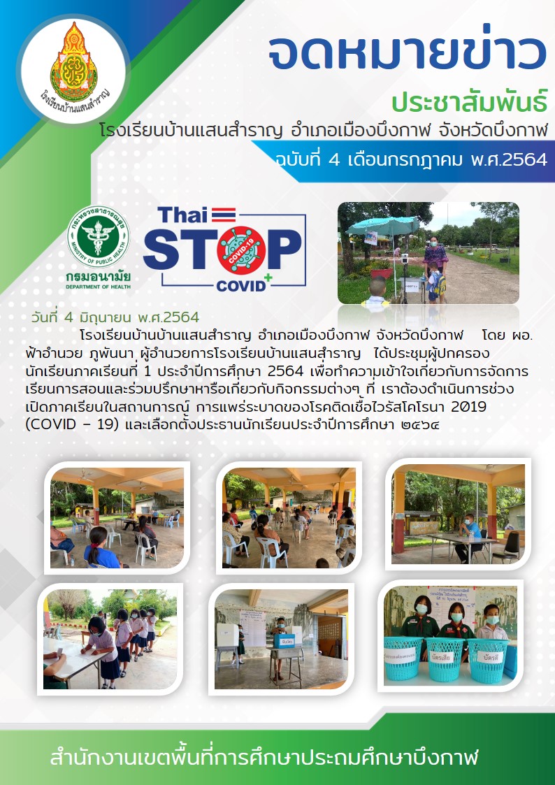 ![]() | จดหมายข่าวประชาสัมพันธ์ประจำเดือนกรกฎาคม ๒๕๖๔ โรงเรียนบ้านแสนสำราญ(เผยแพร่เมื่อวันที่ 16 กค 2564 09:18:12 น.) ผู้รายงาน : ธุรการโรงเรียน บ้านแสนสำราญ |
