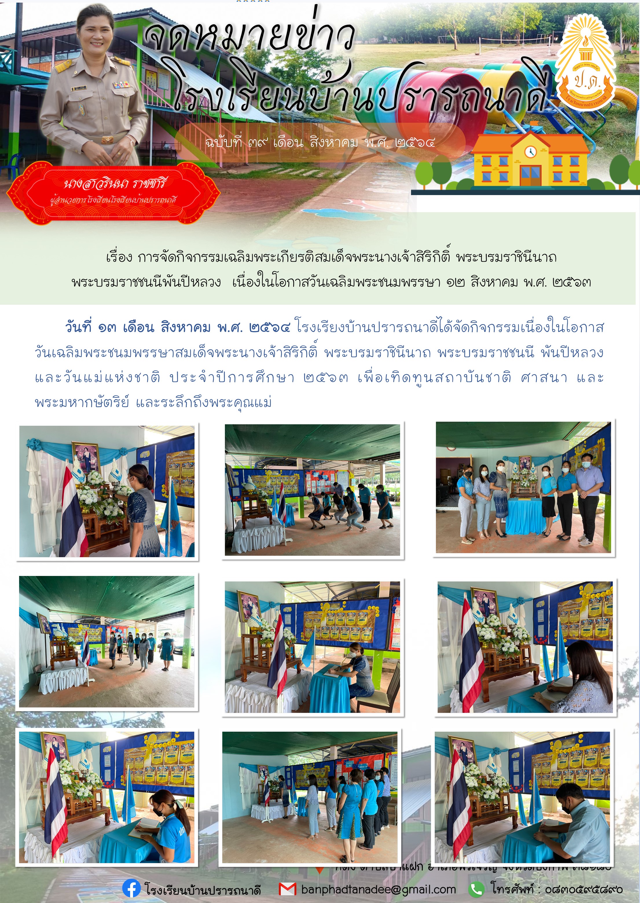 จดหมายข่าว โรงเรียนบ้านปรารถนาดี เรื่อง การจัดกิจกรรมเฉลิมพระเกียรติสมเด็จพระนางเจ้าสิริกิติ์ พระบรมราชินีนาถ พระบรมราชชนนีพันปีหลวง