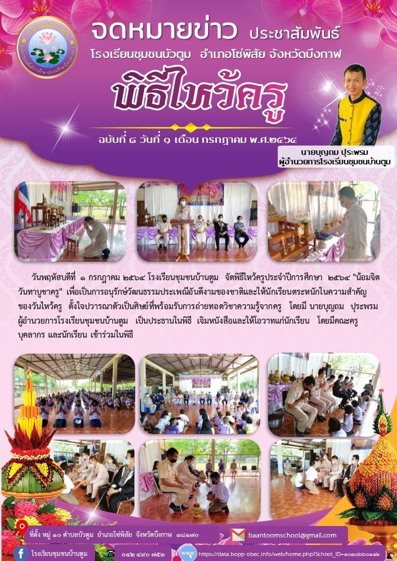 โรงเรียนชุมชนบ้านตูม เรื่อง จัดพิธีไหว้ครูประจำปีการศึกษา ๒๕๖๔