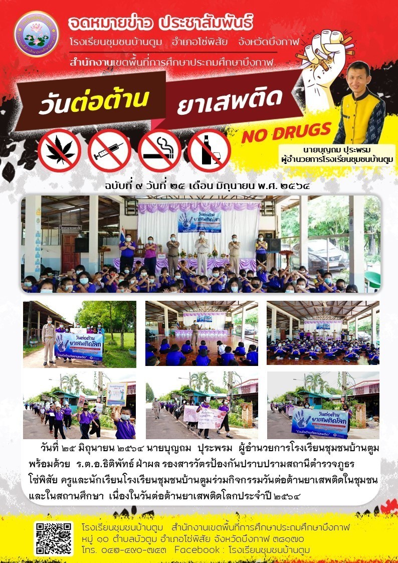 โรงเรียนชุมชนบ้านตูม จัดกิจกรรมวันต่อต้านยาเสพติดในชุมชนและในสถานศึกษา เนื่องในวันต่อต้านยาเสพติดโลกประจำปี ๒๕๖๔