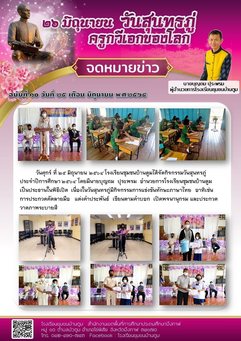 โรงเรียนชุมชนบ้านตูม เรื่อง จัดกิจกรรมวันสุนทรภู่ ประจำปีการศึกษา 2564